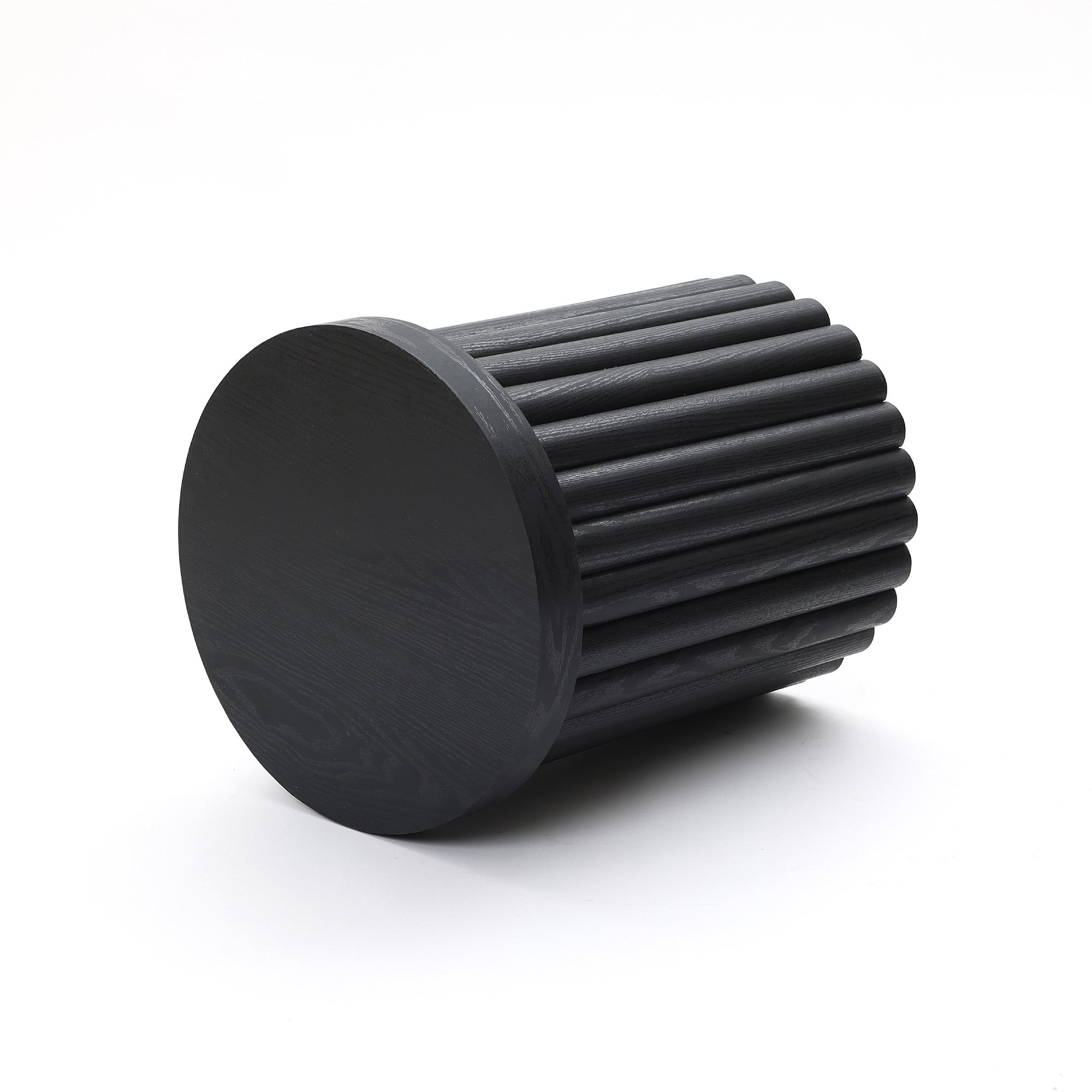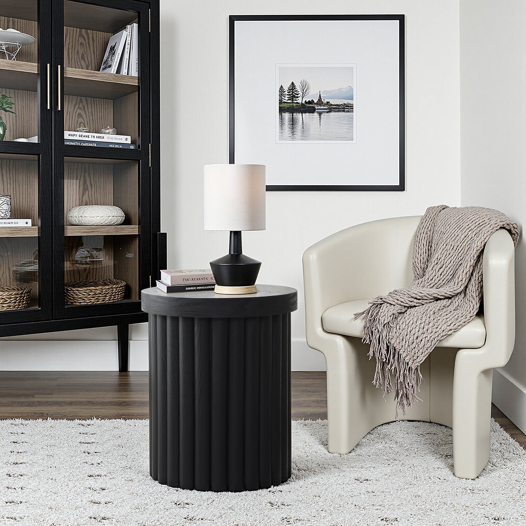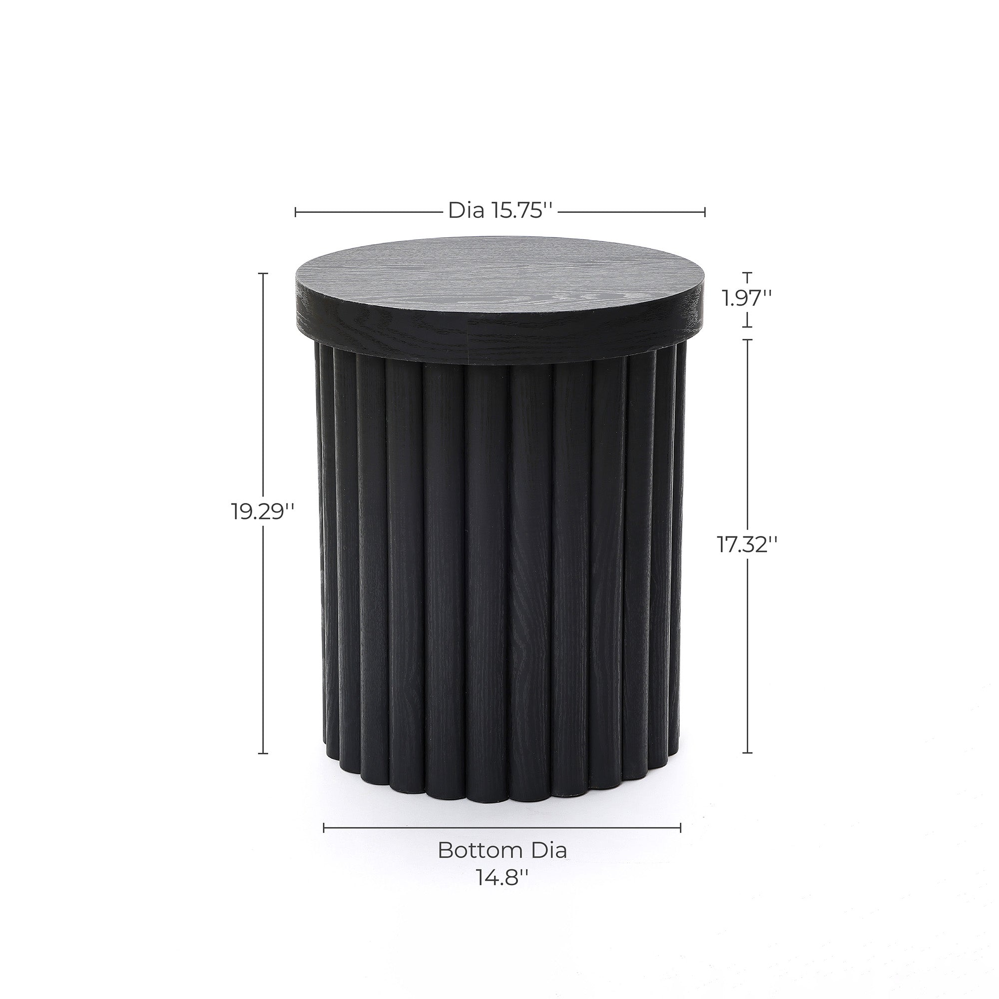 Bella Round Wood Fluted Side Table,Black 19.29''