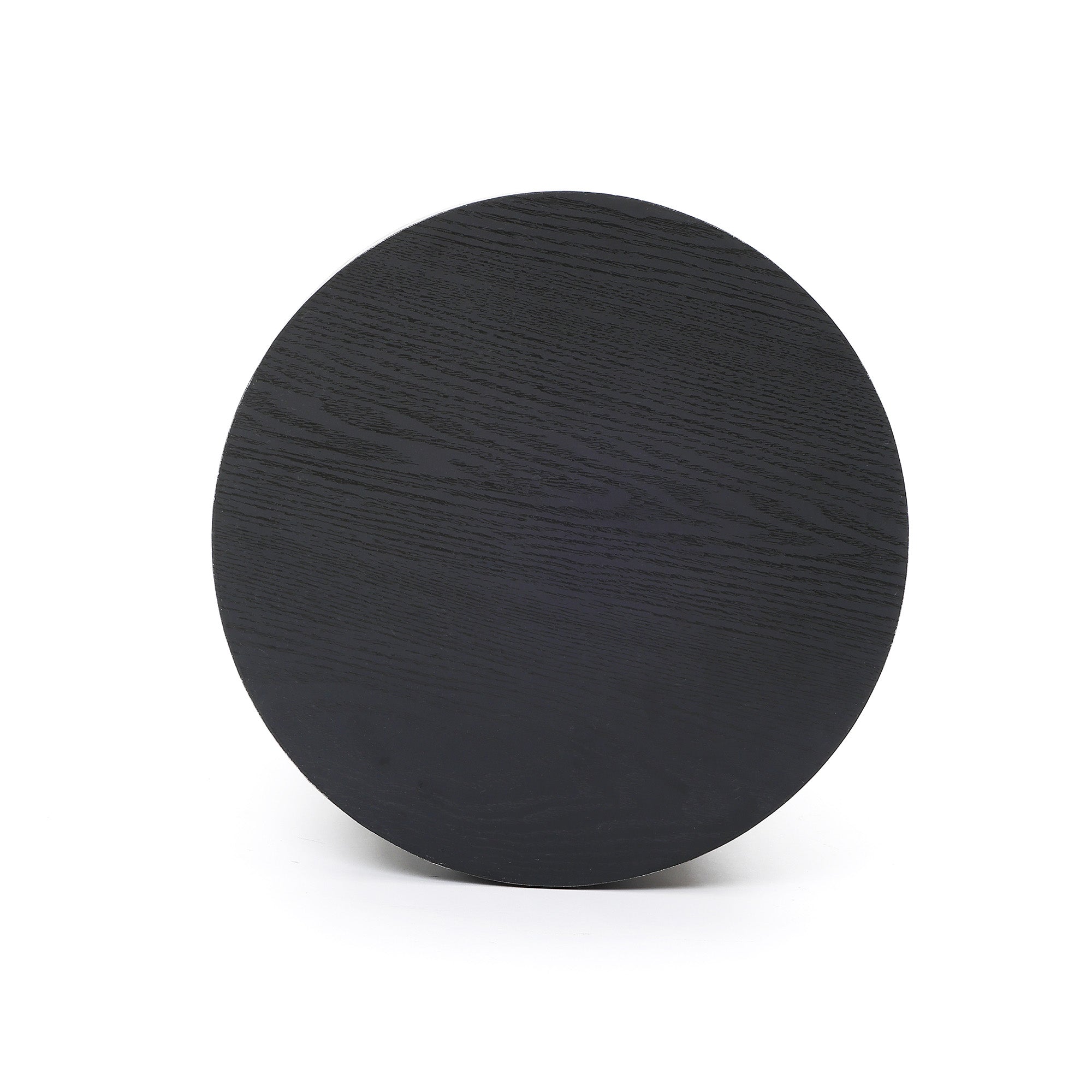 Crafted from durable MDF,long-lasting stability. With dia of 15.75" ,19.29"H, provides ample space for lamps, books. Black finish enhances the natural wood texture, creating a sense of depth, warmth.