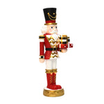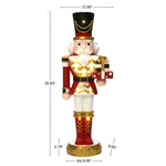 This 3ft Nutcracker Red Soldier adds a festive touch to your holiday décor with red, gold, white colors. Holding a gift box that symbolizes the joy of the season , perfect holiday figurine to brighten your space.