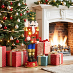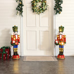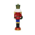 This 3Ft nutcracker red soldier a classic statement piece for festive spaces. Featuring traditional red and green colors, gold accents, and a charming holiday wreath.