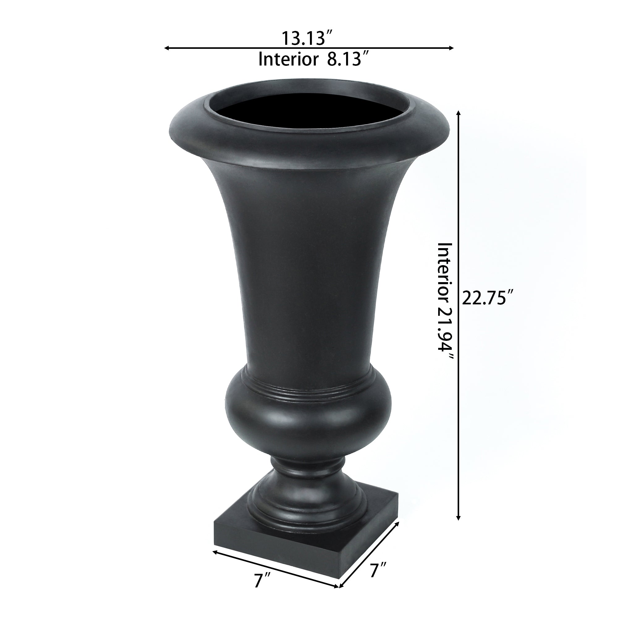 Victorian urn planter, black, 22.75" h