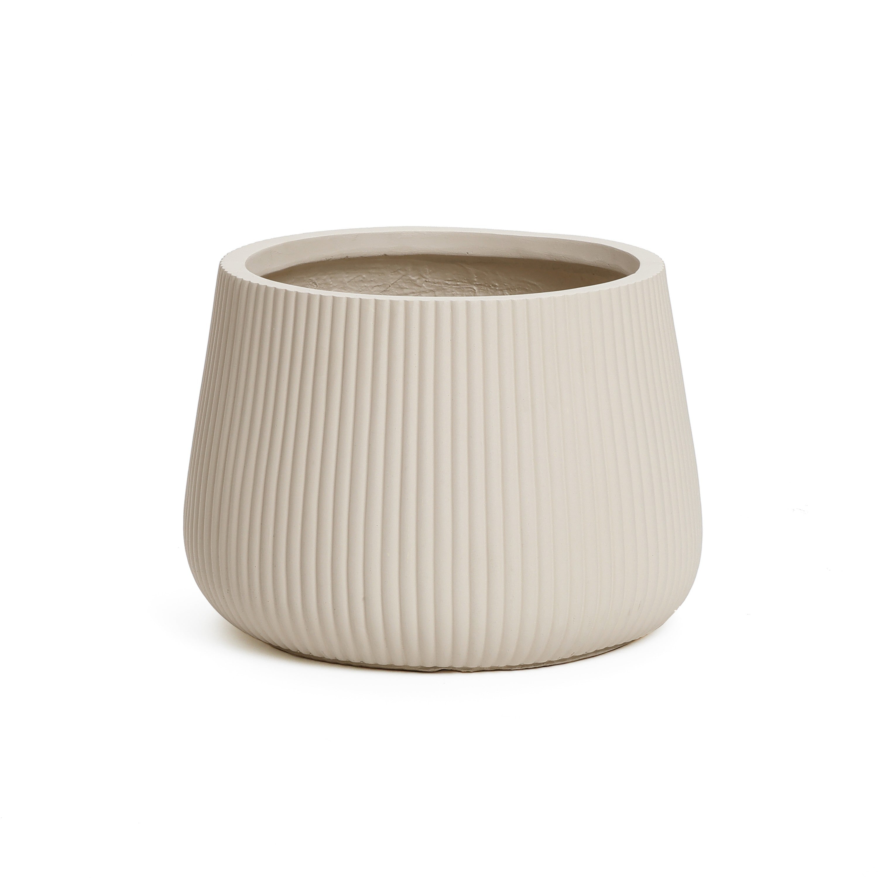 With its subtle off-white finish and vertical ribbed texture, this 15.55-inch round planter makes an ideal addition to any space needing a touch of style. Perfect as one of your go-to accent planters, it complements both modern and transitional decor. The clean form pairs beautifully with greenery or dried arrangements, while its lightweight build ensures effortless placement indoors or on covered patios. These accent planters offer both function and understated elegance.