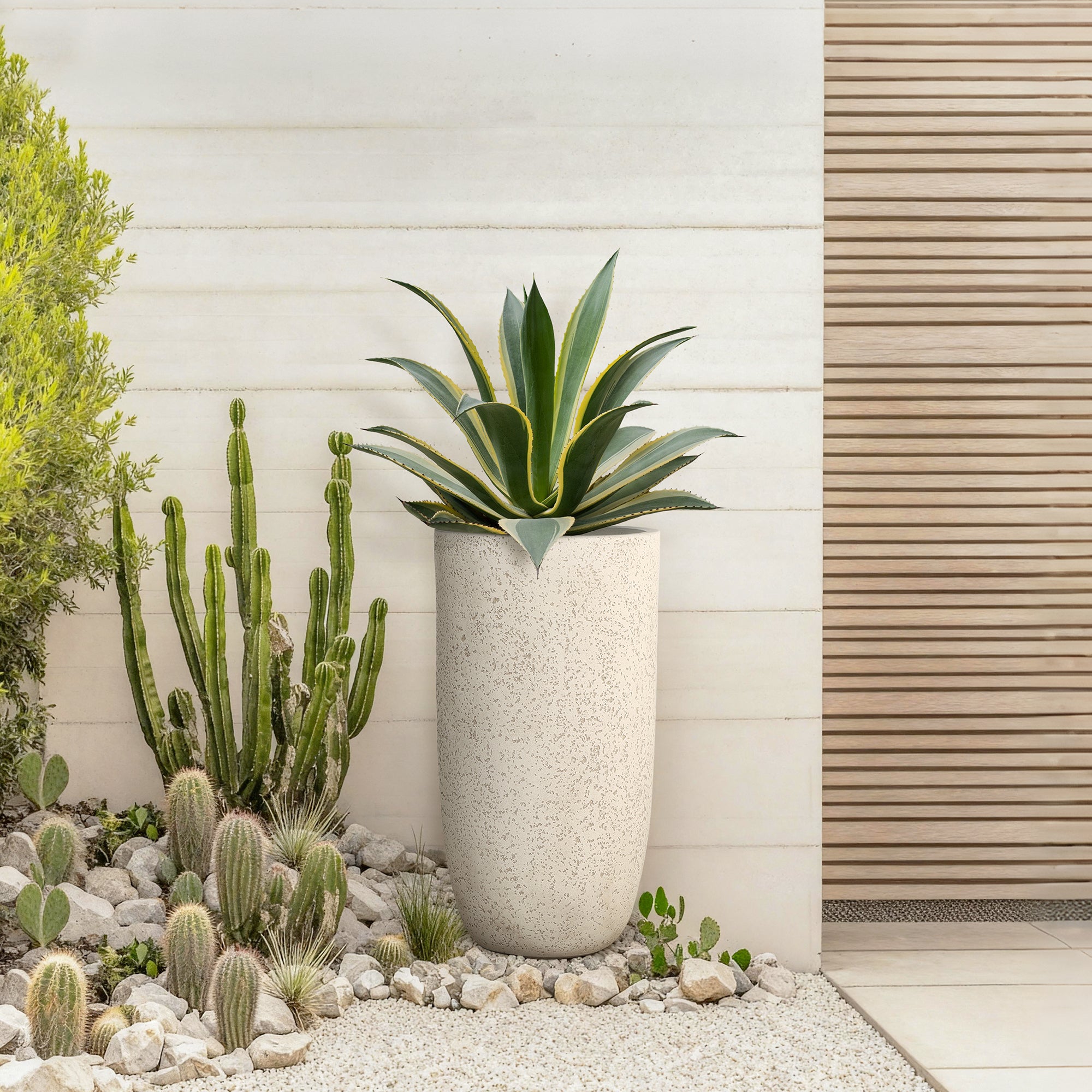 Ideal for showcasing trees, palms, statement plants, visual interest to any space. A built-in drainage hole with removable waterproof plug allows flexible use. Available in 2 sizes (22.72'' H × 12.01'' W × 12.01'' D ; 23.5'' H × 15.75'' W × 15.75'' D), adapts effortlessly to your styling needs.