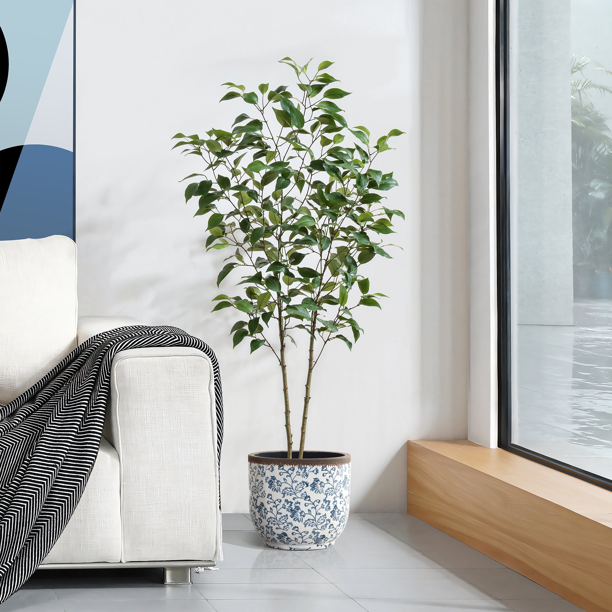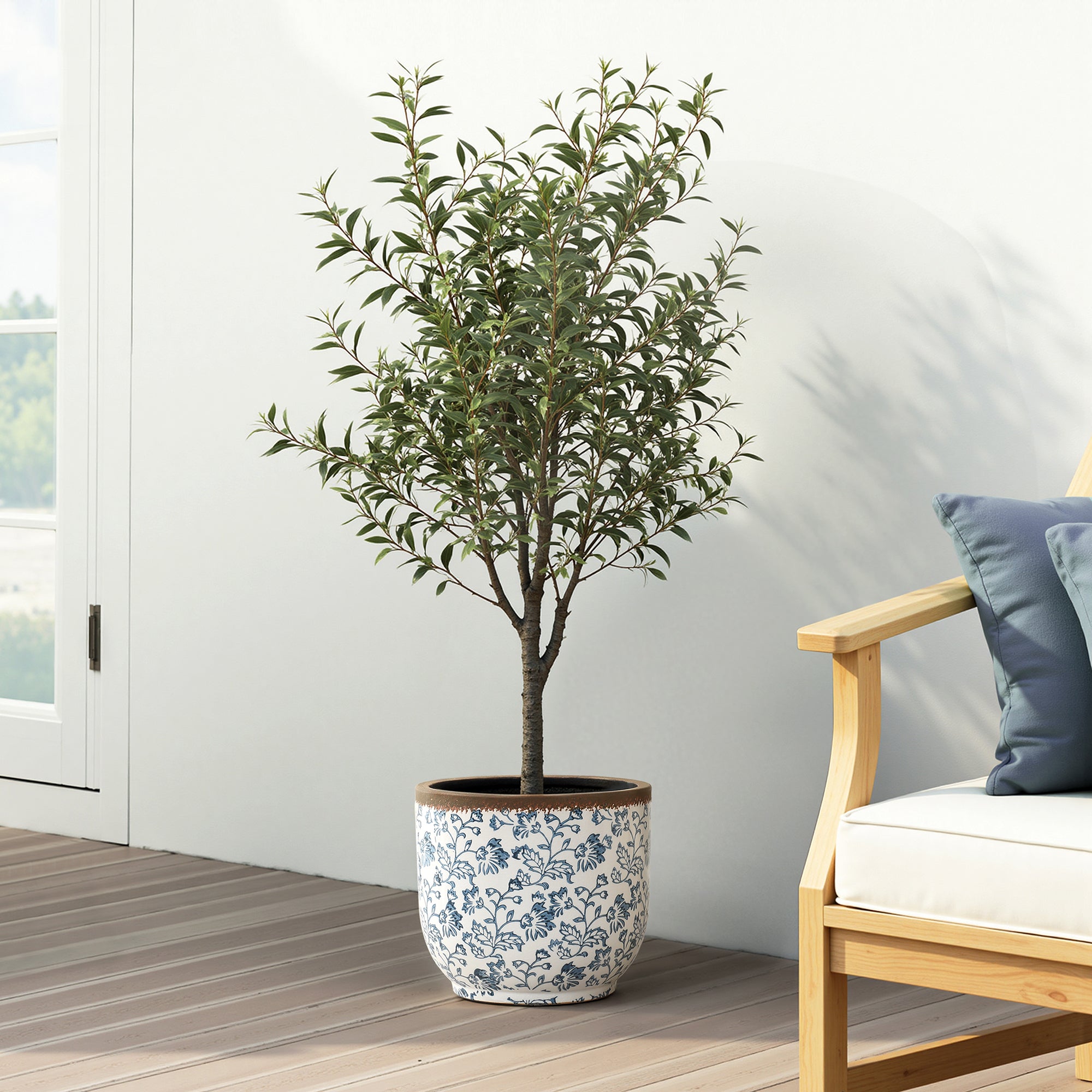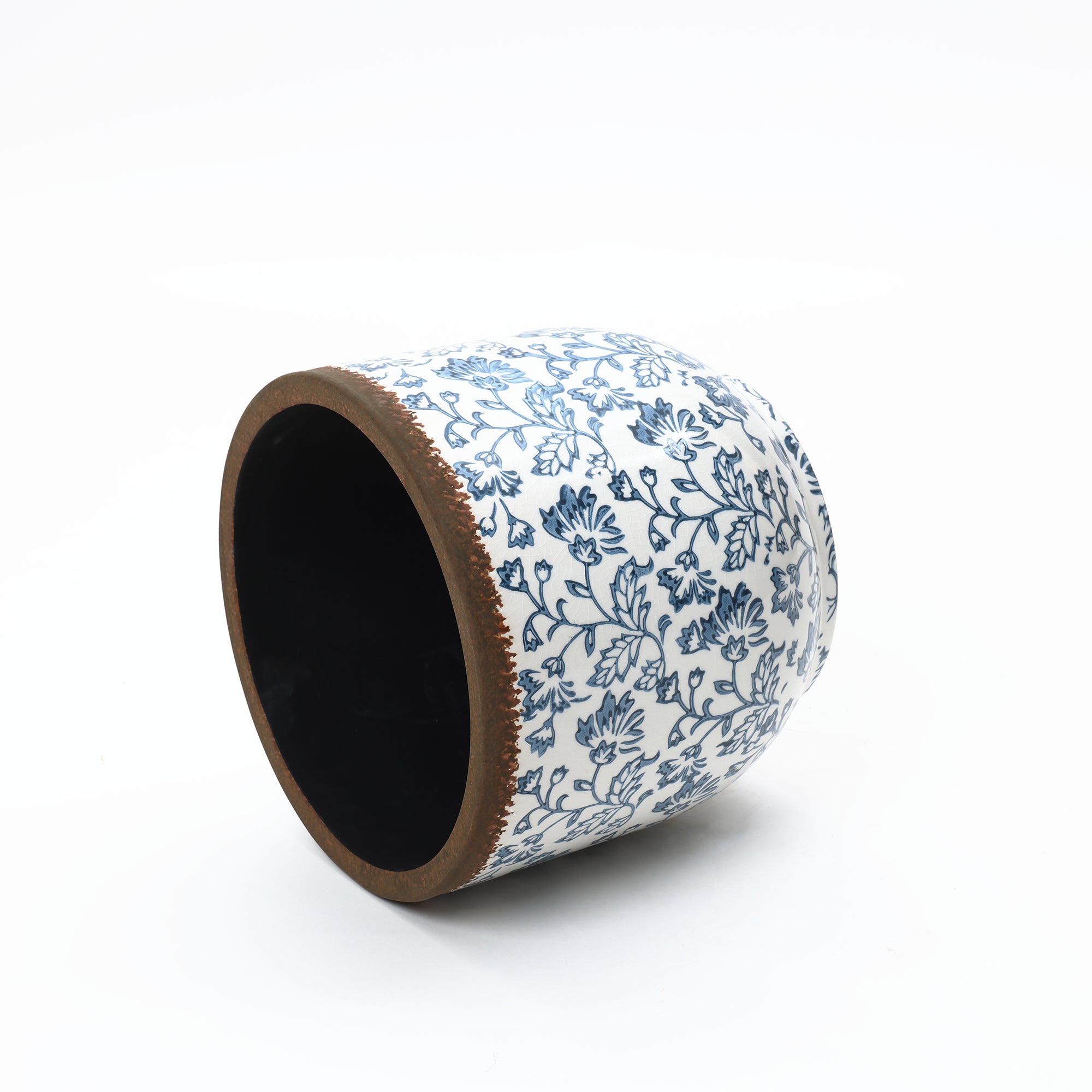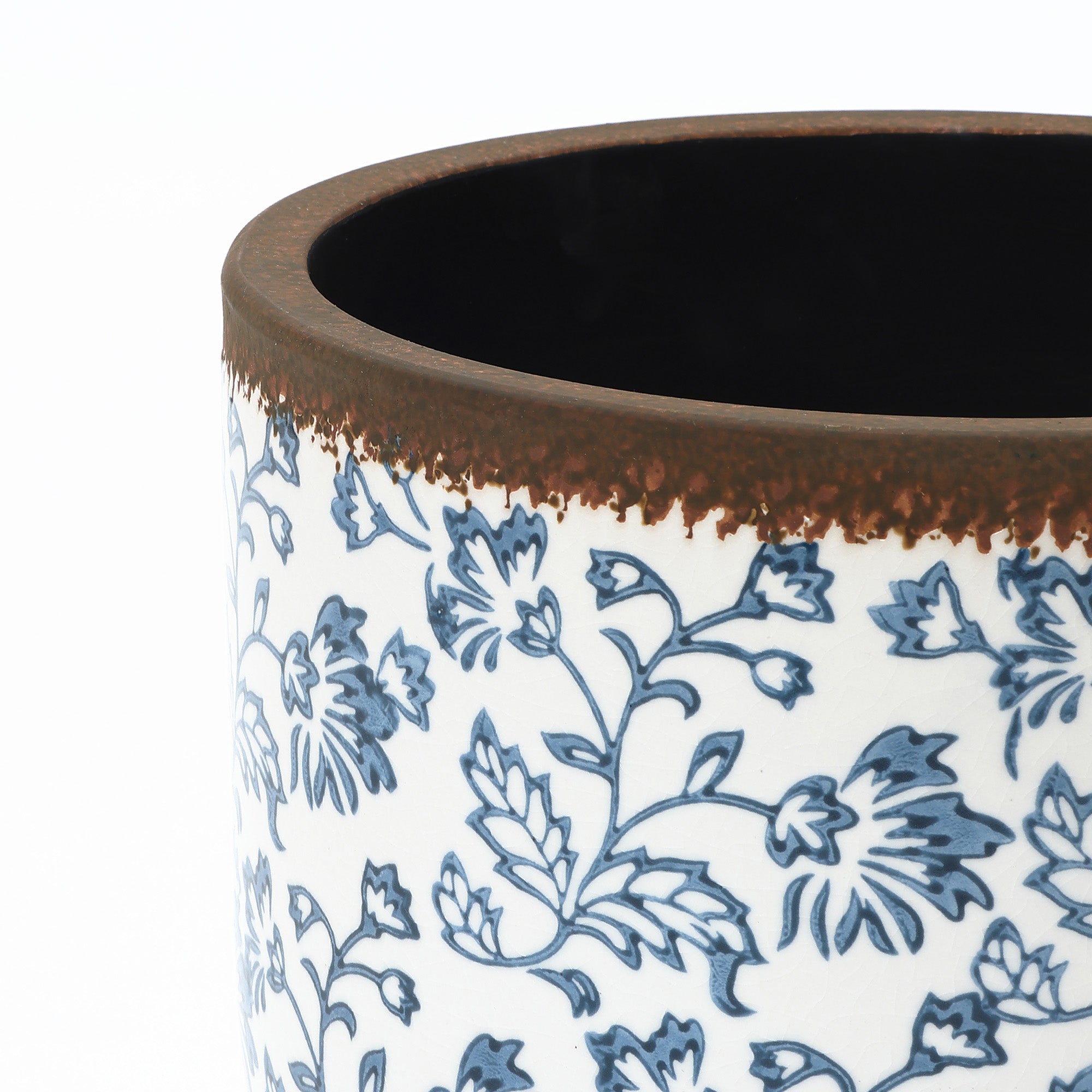 - Elegant Floral Style: Timeless blue floral patterns and a rustic brown rim create a classic ceramic planter.