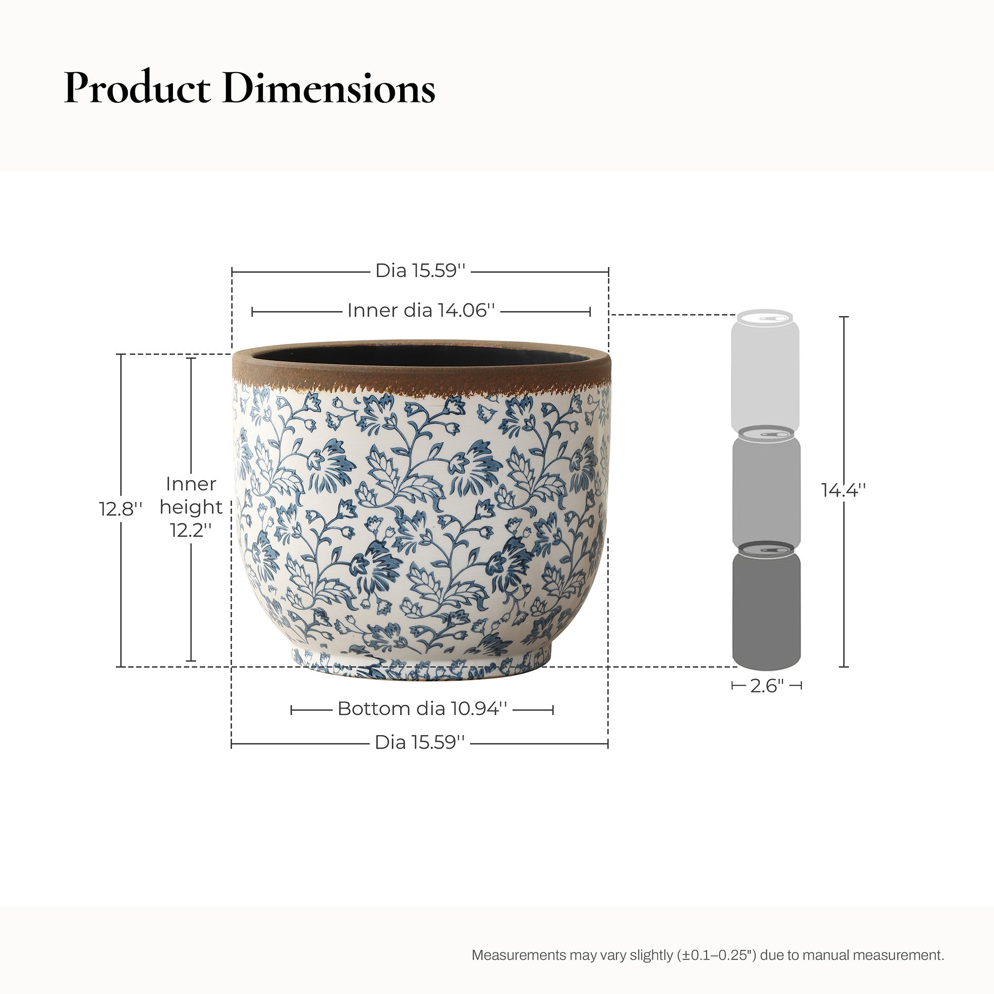 - Size: Measures 15.59"Dia × 12.79"H, suitable for planting greenery and flowers or displaying as a decorative accent.