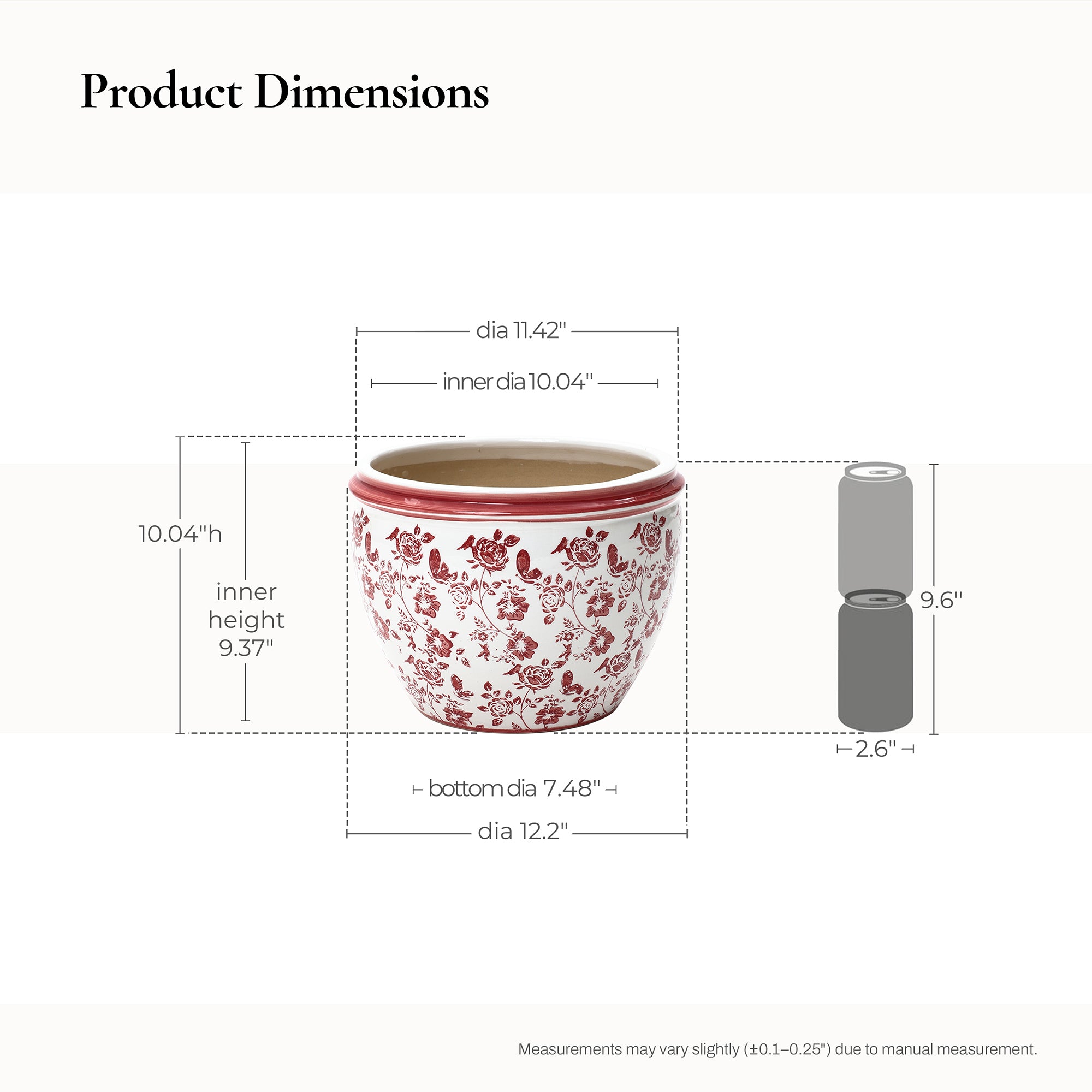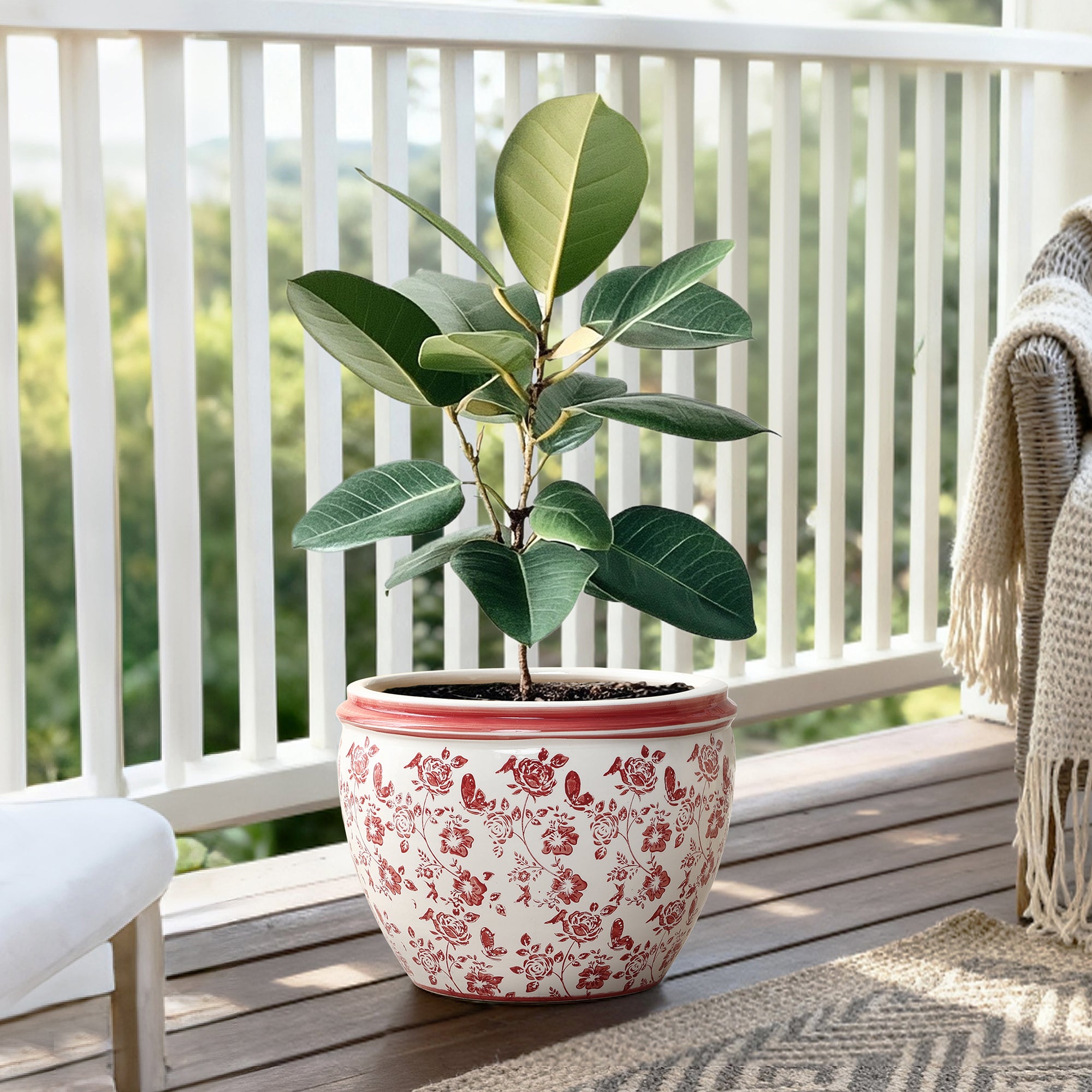 Brighten up your home or garden with our stunning 12'' Ceramic Round Planter. Featuring bold red floral print, perfect combination of style, functionality.