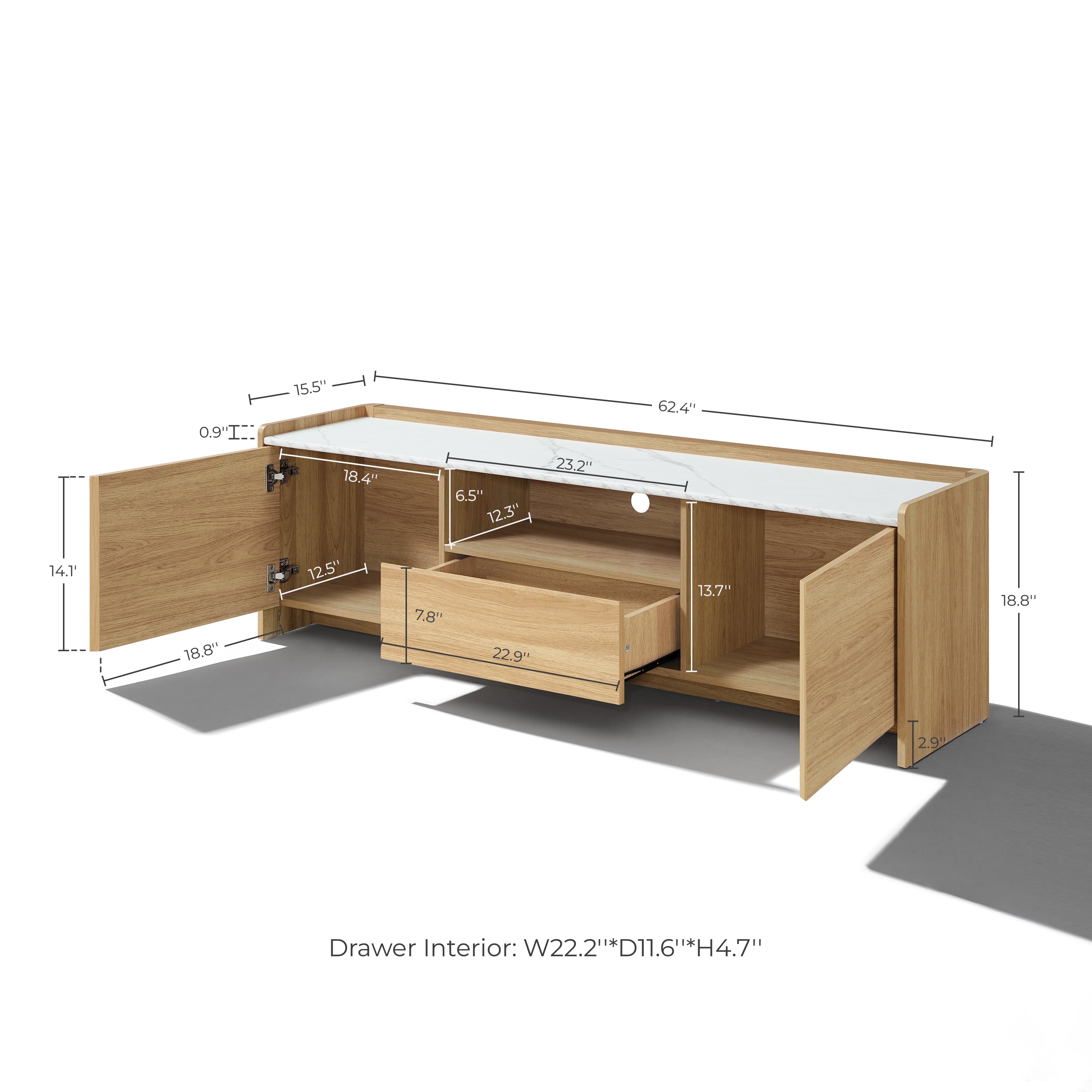 - Faux Marble Top with Warm Wood Grain:The TV stand features faux marble top paired with natural wood-look body.