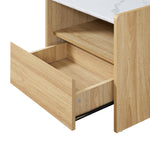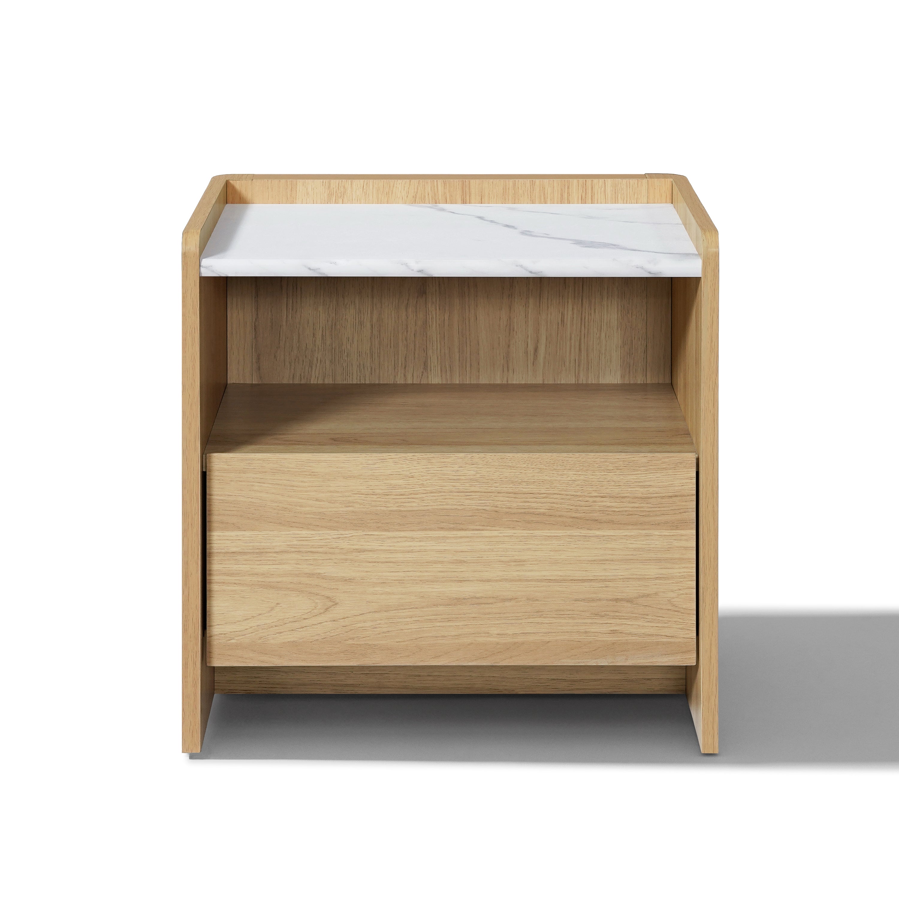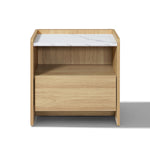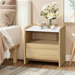 Modern Wood Storage End Table with with Faux Marble Top,Oak