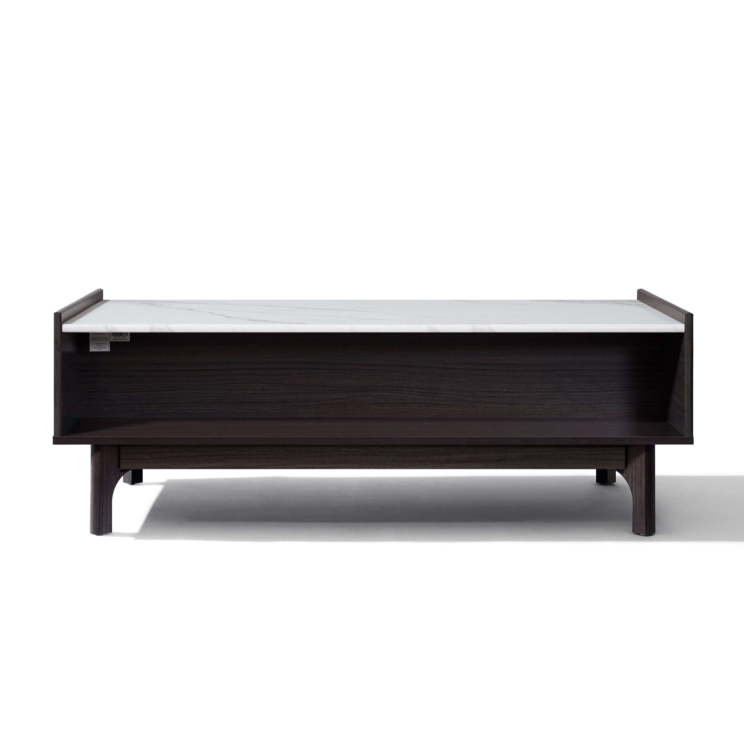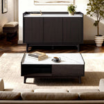 Modi Wenge Wood Coffee Table with Faux Marble Top, 47"