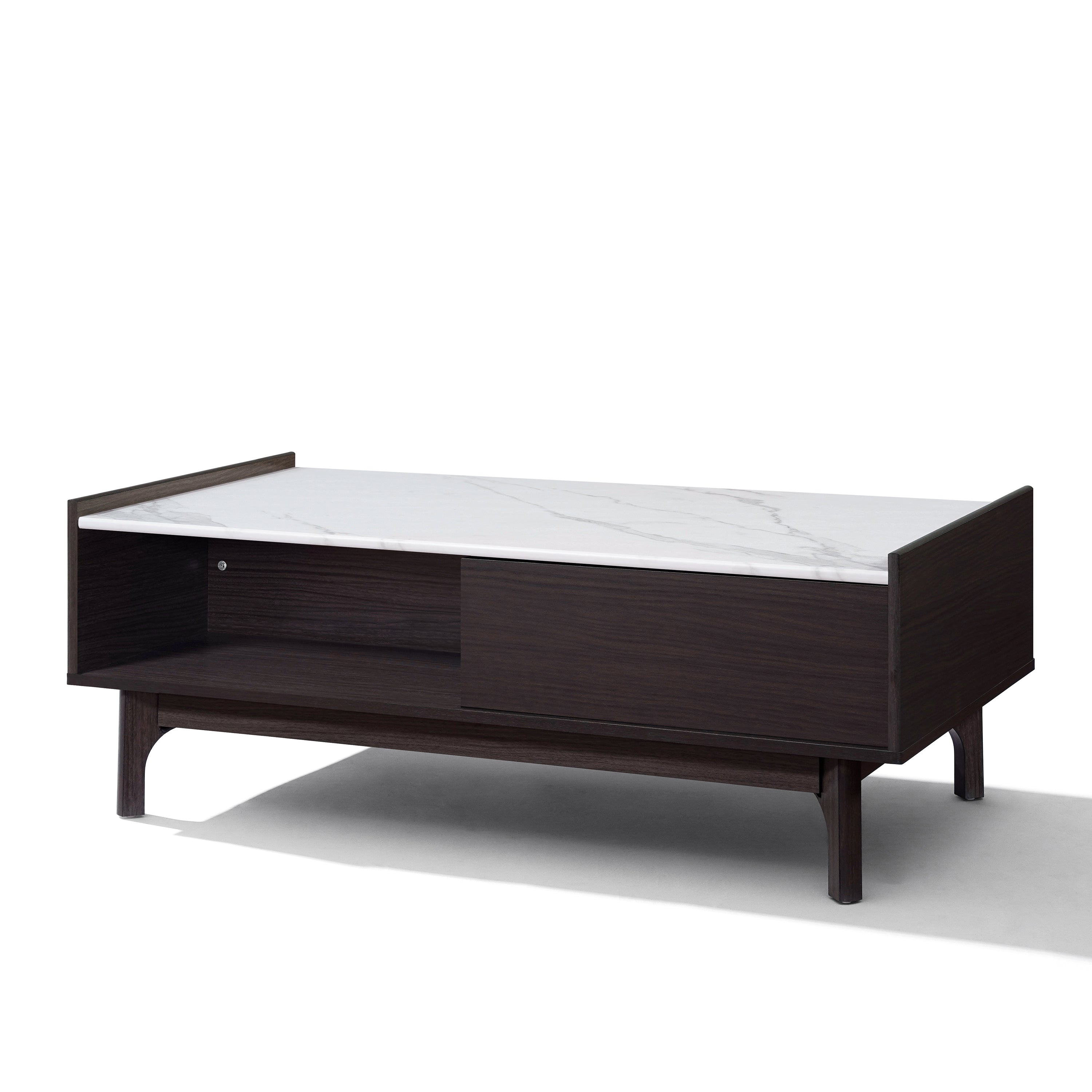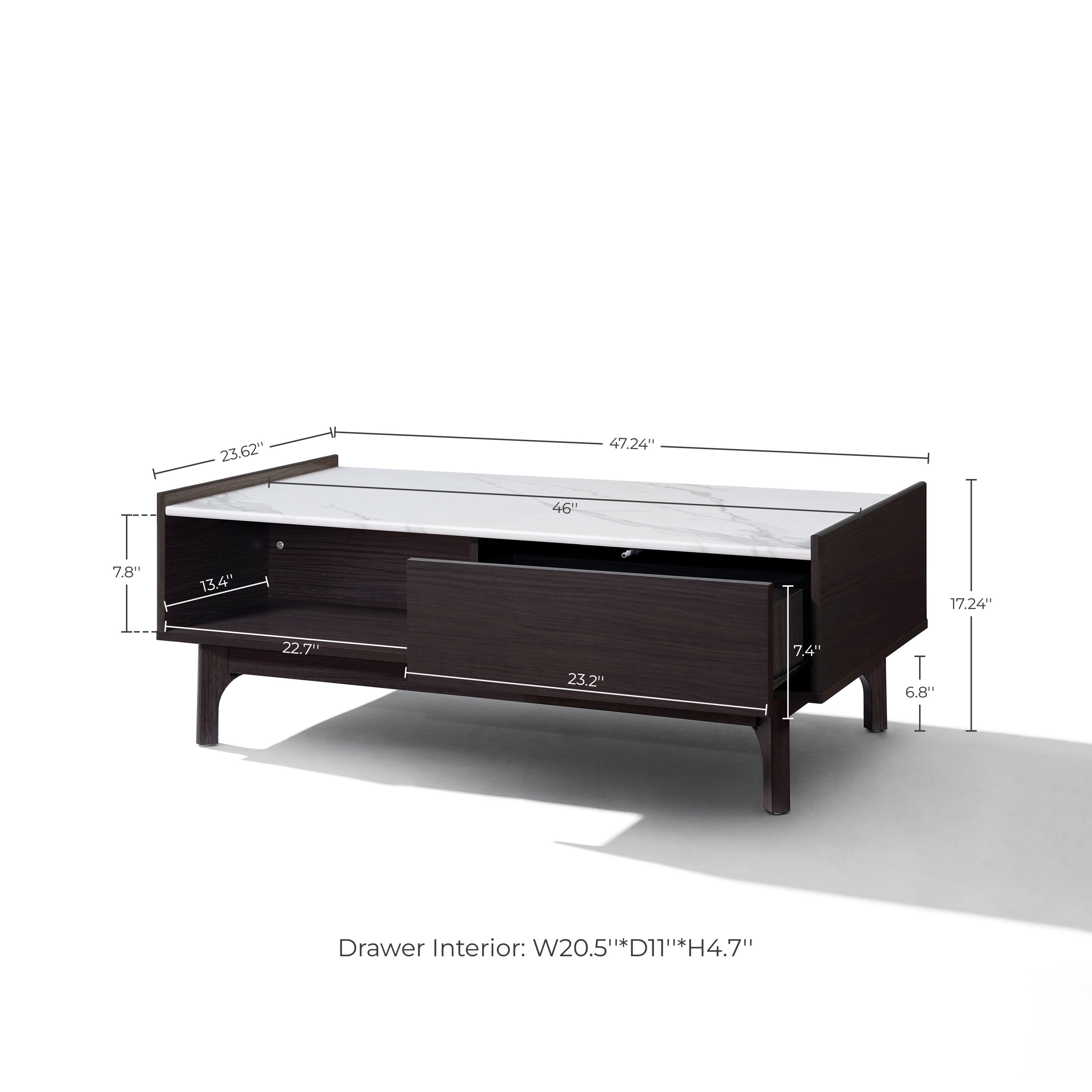 - Practical Storage: Features a drawer and two open shelf, offering flexible space in one coffee table with storage.