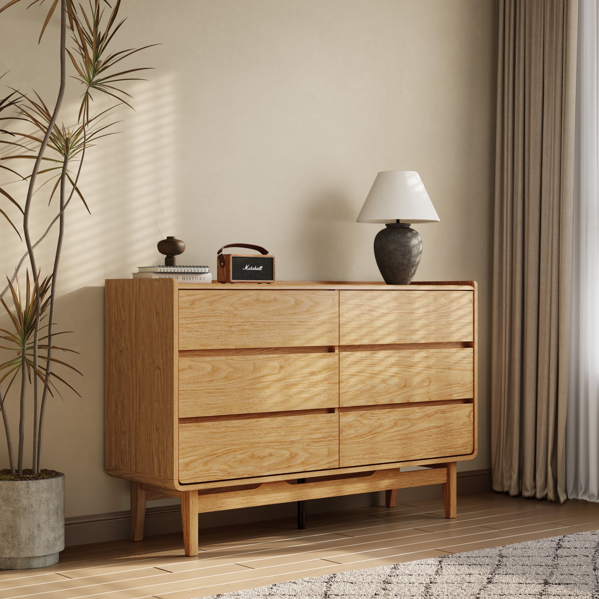 - Mid-Century Modern Style:6-drawer horizontal dresser embodies with walnut wood color, smooth, enhance, warm appearance.