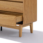 Crafted from high-quality Summer Oak Engineered Wood, ensures durability, elegant surface. The unique round wooden legs offer stable support while enhancing airy. Rounded edges provide added safety, sleek aesthetic. With rigorous anti-tip testing, designed for superior stability.