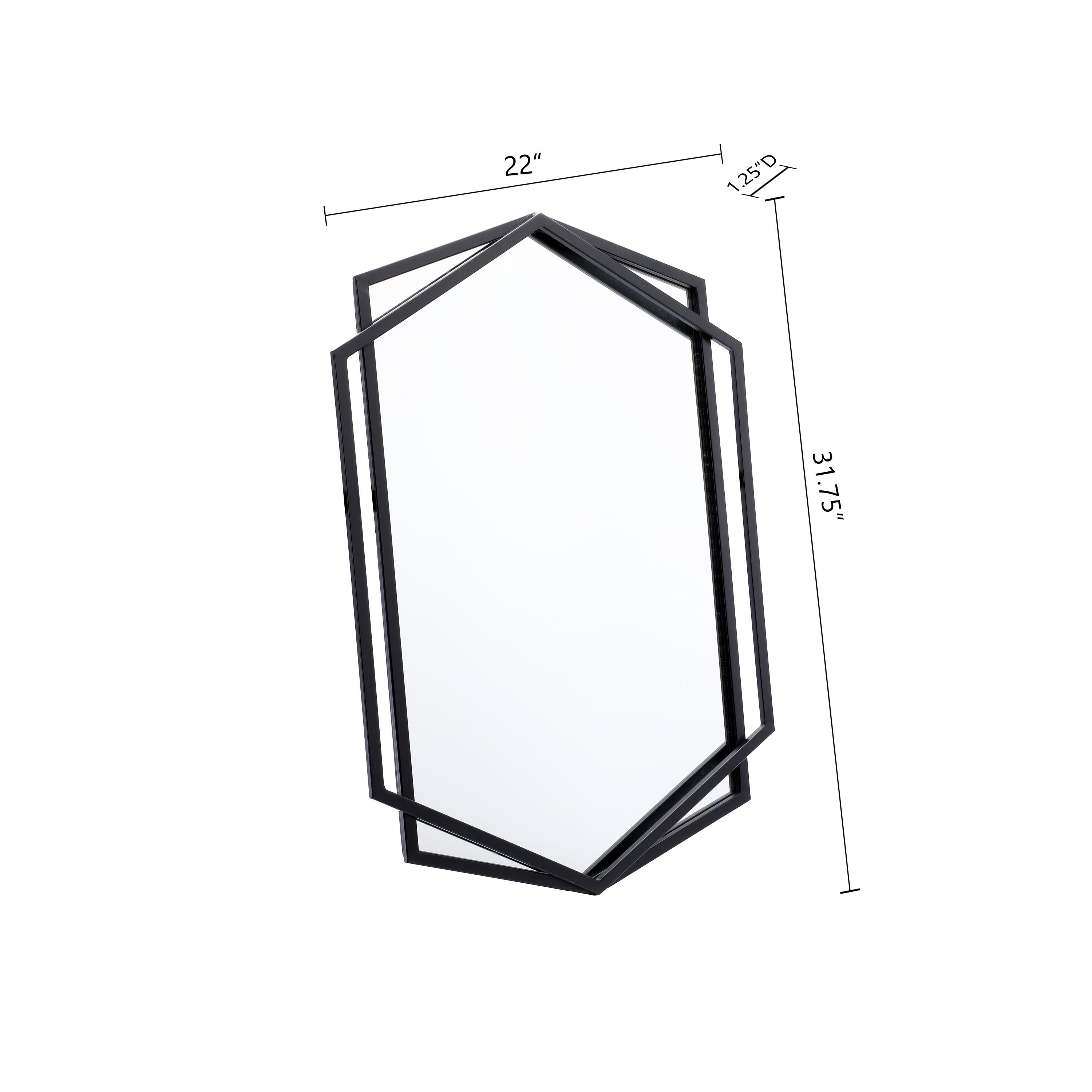 Combining beauty with function, this accent wall mirror features a modern style inspired by a minimalist design with its clean lines and angular structures. Decorate your wall with this slim metal frame and decorative mirror. The accent mirror features two overlapping hexagonal metal frame in a matte black finish. The metal-on-metal design is perfect for creating a fresh and open feeling in your entryway, hall, bedroom, and other interior spaces. The artful design allows this decorative piece to complement your existing decor seamlessly. Place the mirror in your hallway entrance or above a console table making it an instant conversation point in any room.