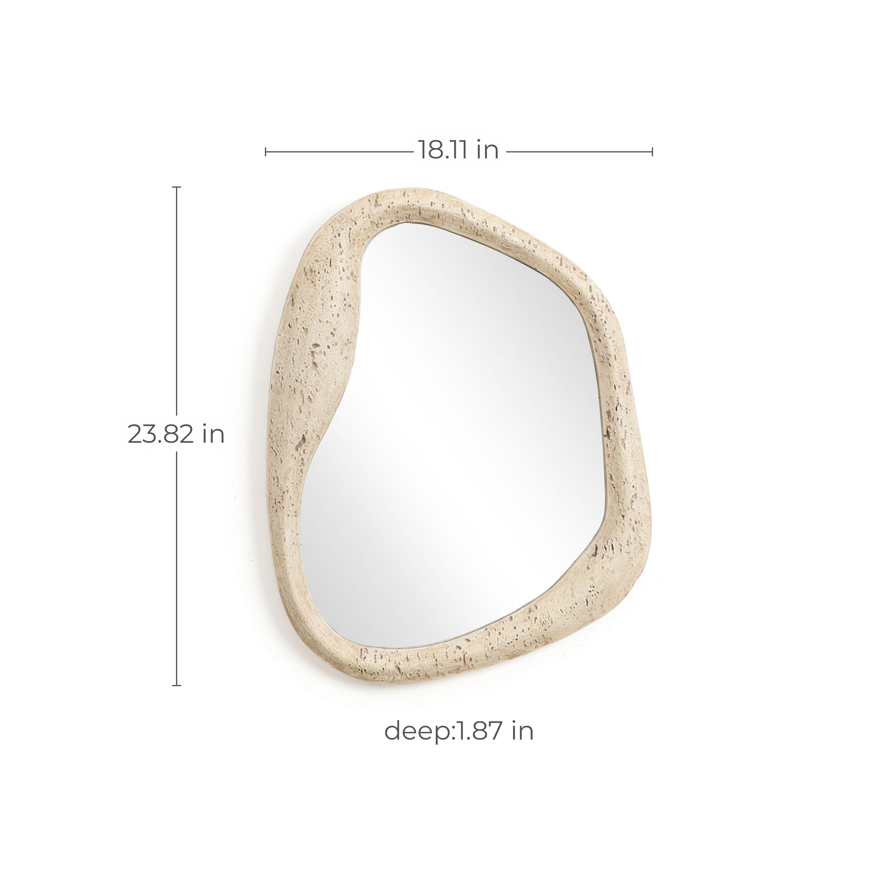 This oval wall mirror features a beige, free-form frame that adds a unique touch to your home decor. Measuring 18.11 inches wide, 23.82 inches tall, and 1.87 inches deep, its perfect for creating an artistic focal point in any room.
