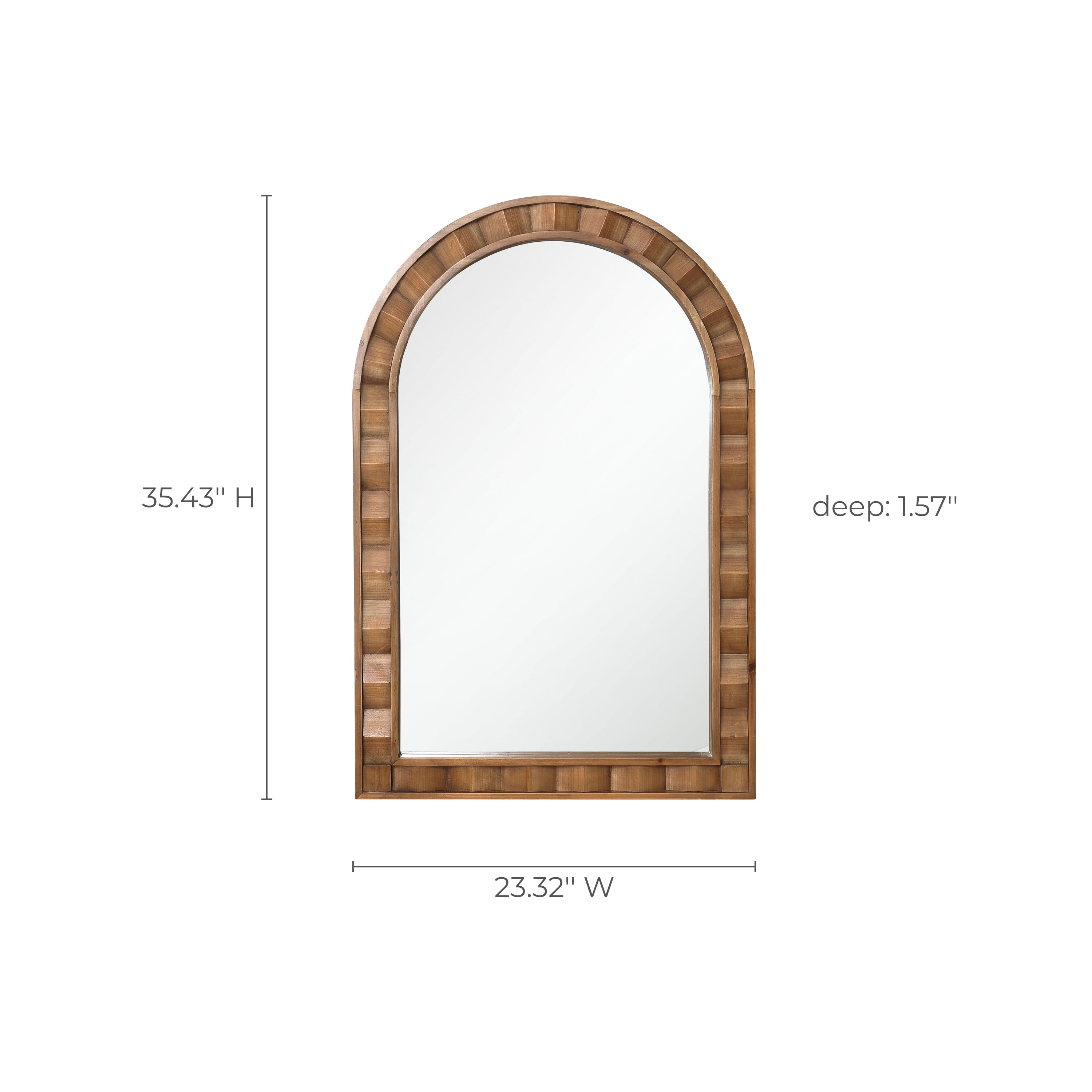 Rustic Solid Frame Arch Rectangle Wood Wall Mirror, 35"H