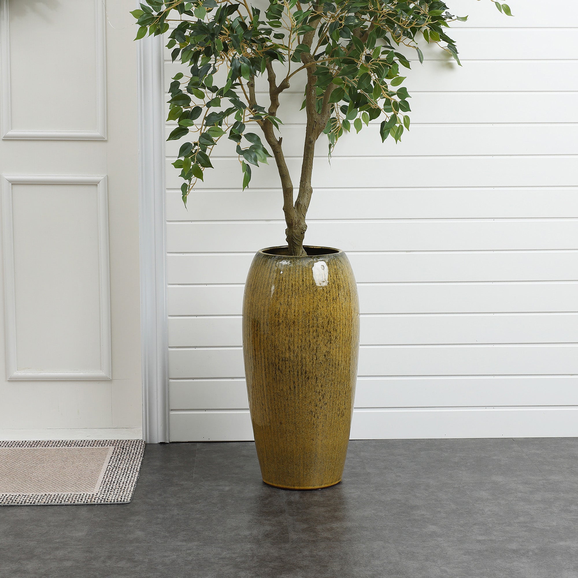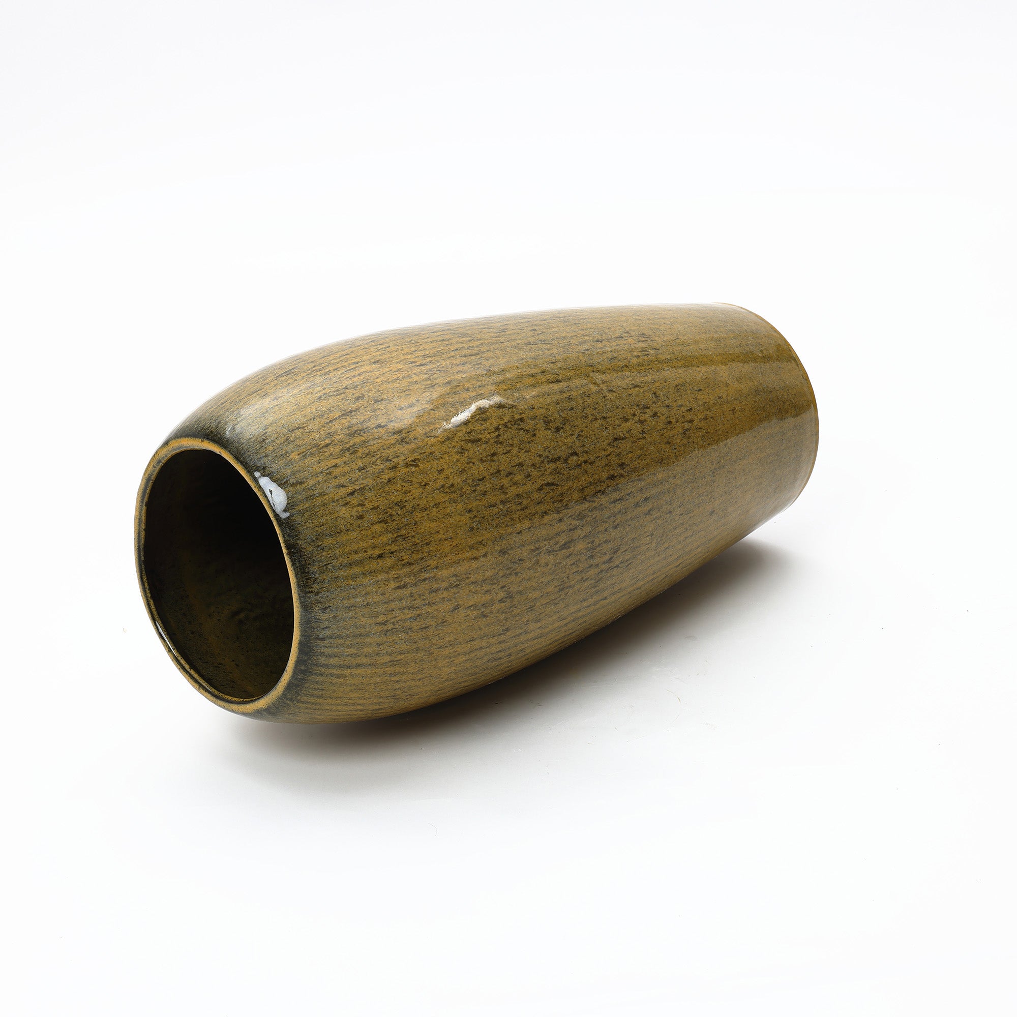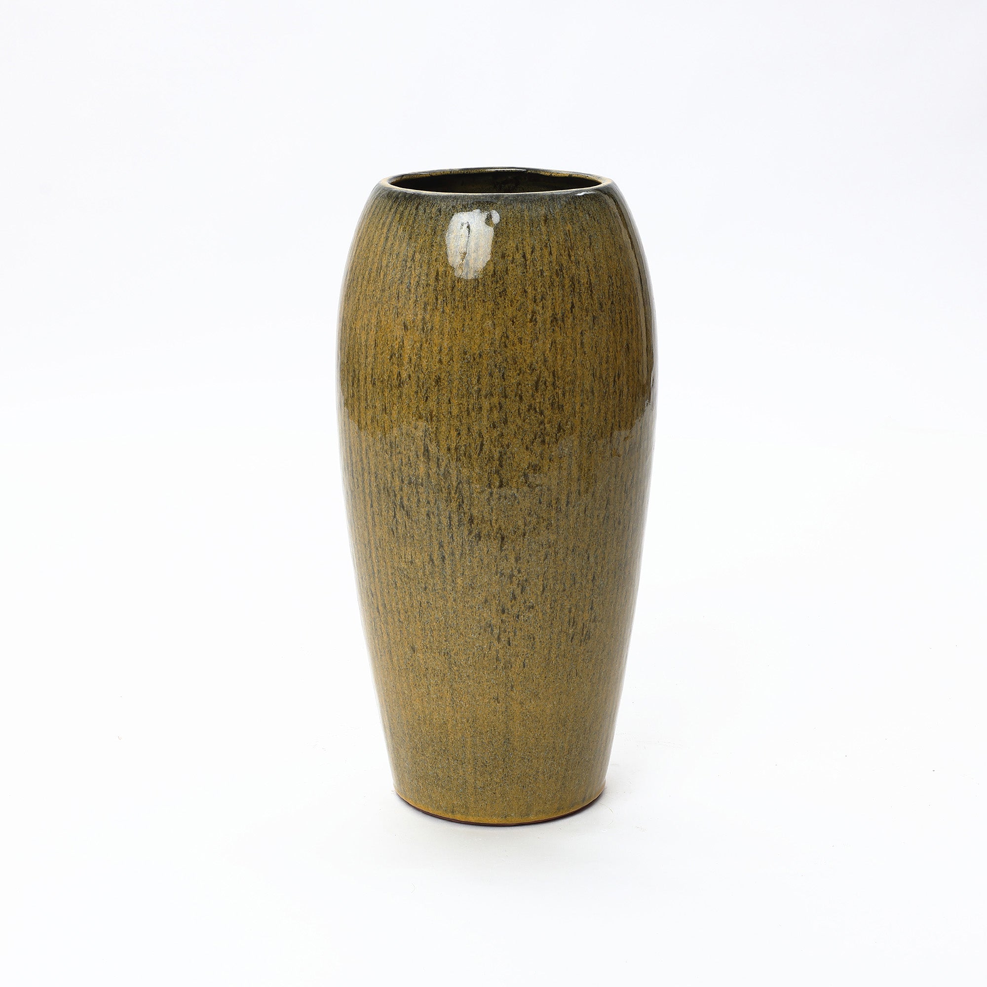 Olive Green with Brown Ceramic Tall Round Planter,23''