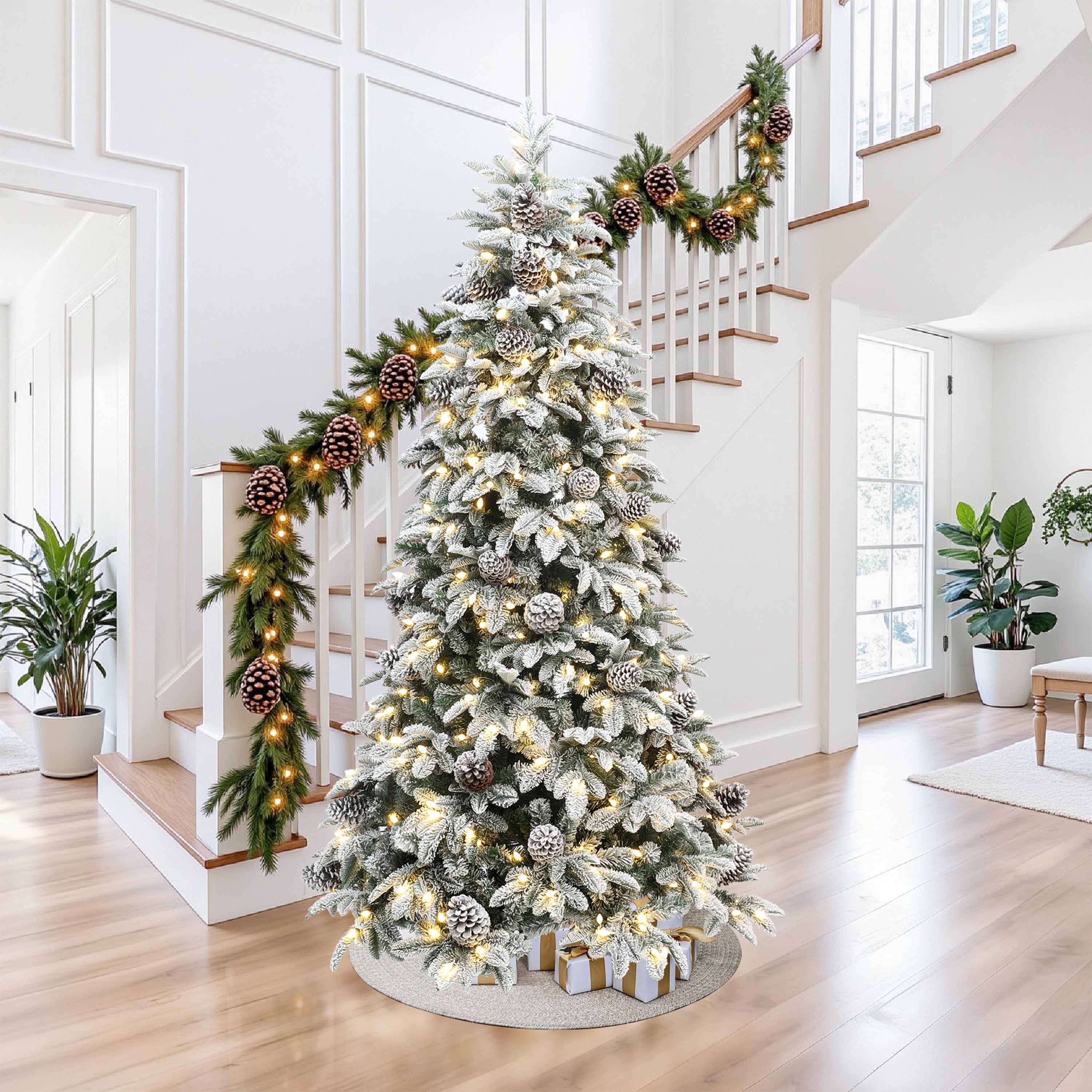 Pre-Lit Flocked Artificial Pine Christmas Tree, 7ft