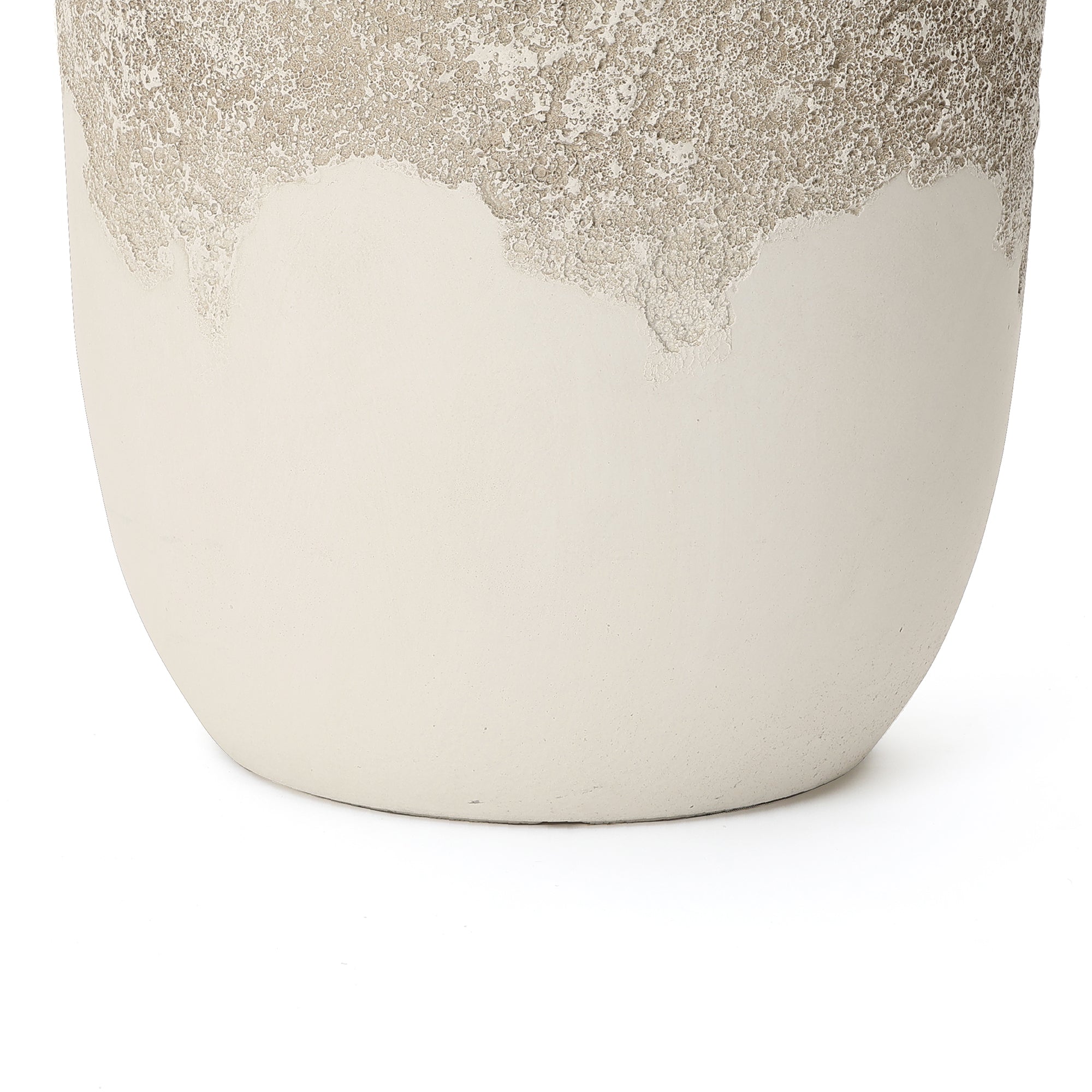 Antique Travertine Tapered Round Planter,Off-White,15.75''