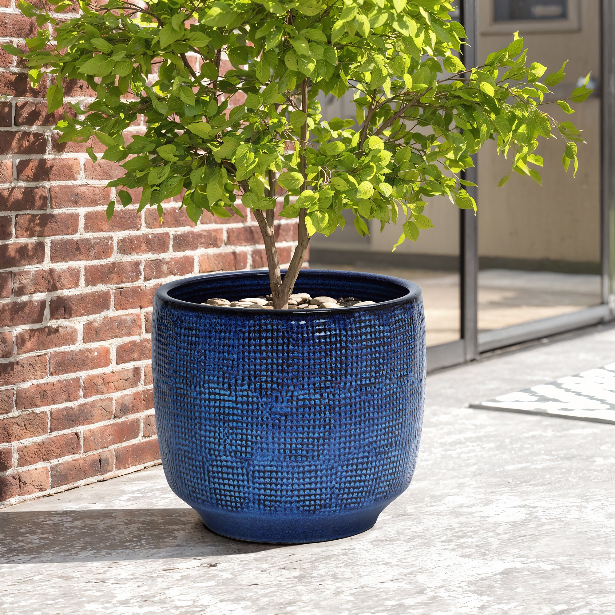 Vintage Ocean Blue Round Ceramic Planter,14''