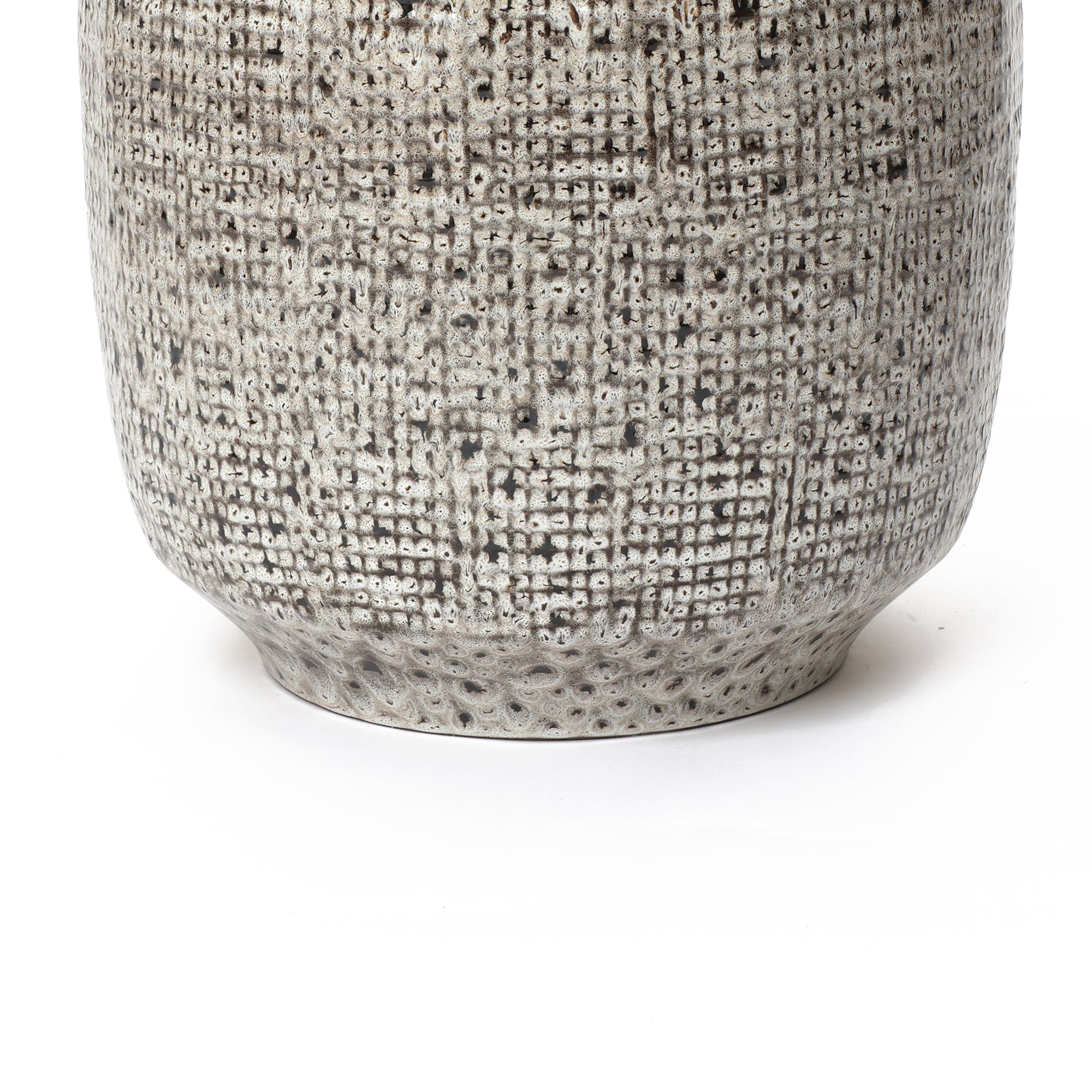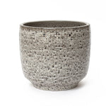 Bring natural texture and modern craftsmanship into your space with this 15.75-inch Stone Speckle Textured Ceramic Planter, designed with a grid-pattern surface that mimics the refined look of hand-carved stone. The speckled finish adds depth and organic character, while the geometric grid texture enhances its contemporary appeal. Its neutral gray palette blends seamlessly with minimalist, Scandinavian, modern, and rustic décor styles. Made from ceramic, the planter offers stability and a deep interior ideal for medium to large plants such as leafy greens, ferns, or decorative trees. For functional planting, it includes a built-in drainage hole at the bottom to help prevent excess water buildup and promote healthy root growth. Whether placed in a living room, patio, or sunroom, this ceramic pot makes a decorative statement and a practical planting vessel. Its sculptural texture and stone-inspired finish bring timeless elegance and natural artistry to any indoor or outdoor setting.