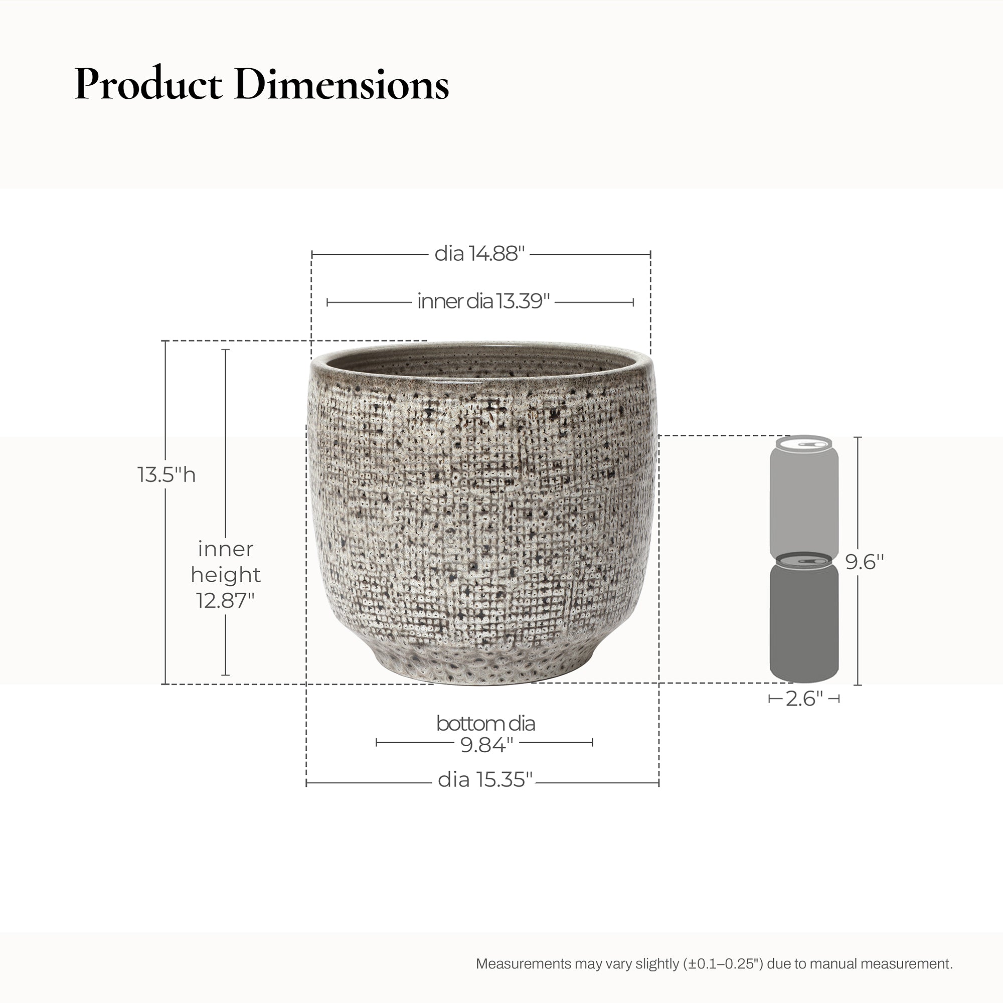 - Practical Size: Measures 15.75"Dia × 14"H with a deep interior and wide opening, providing ample space for planting medium to large greenery or décor.