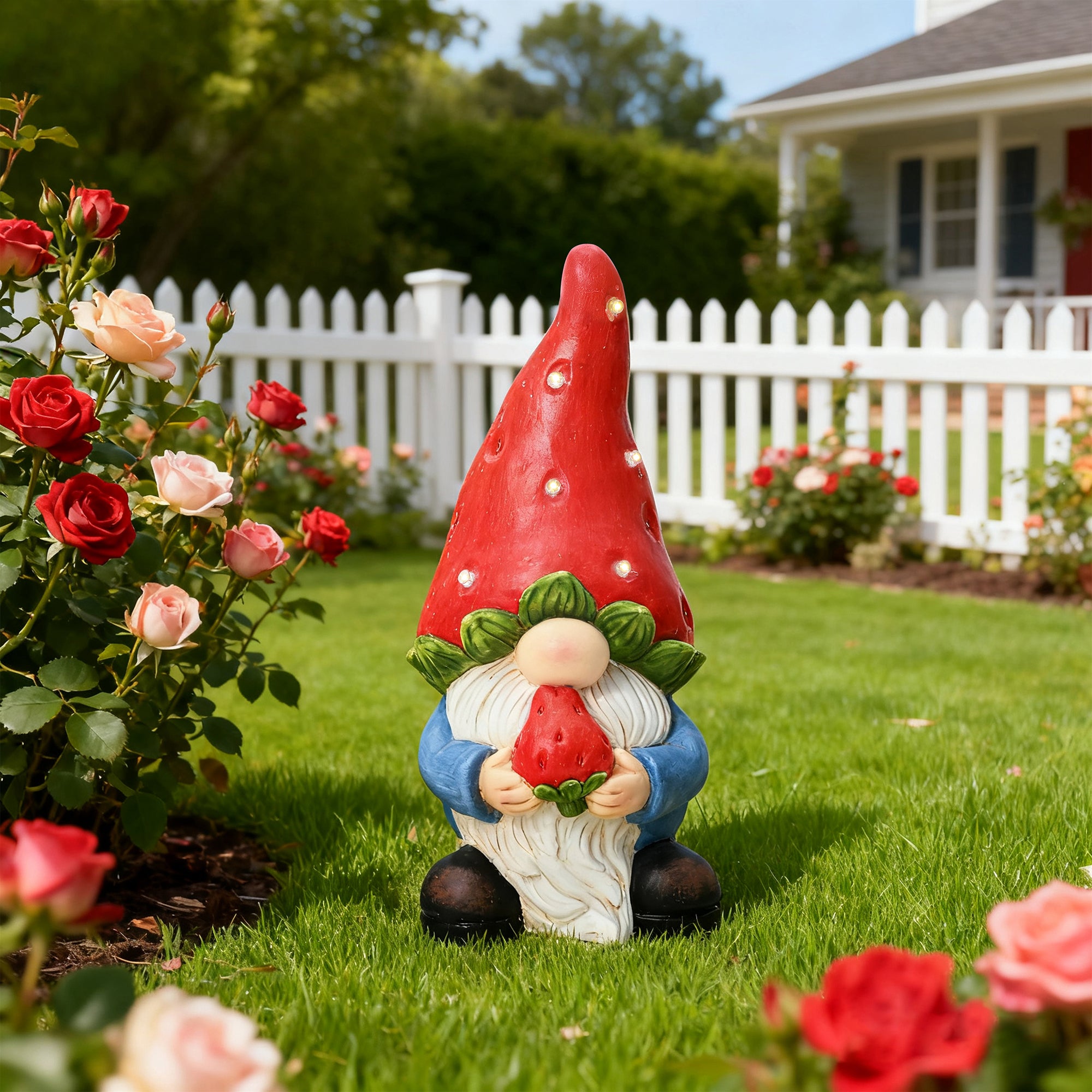 Outdoor Figurine Statue – Solar-Powered Gnome with Accent Lighting