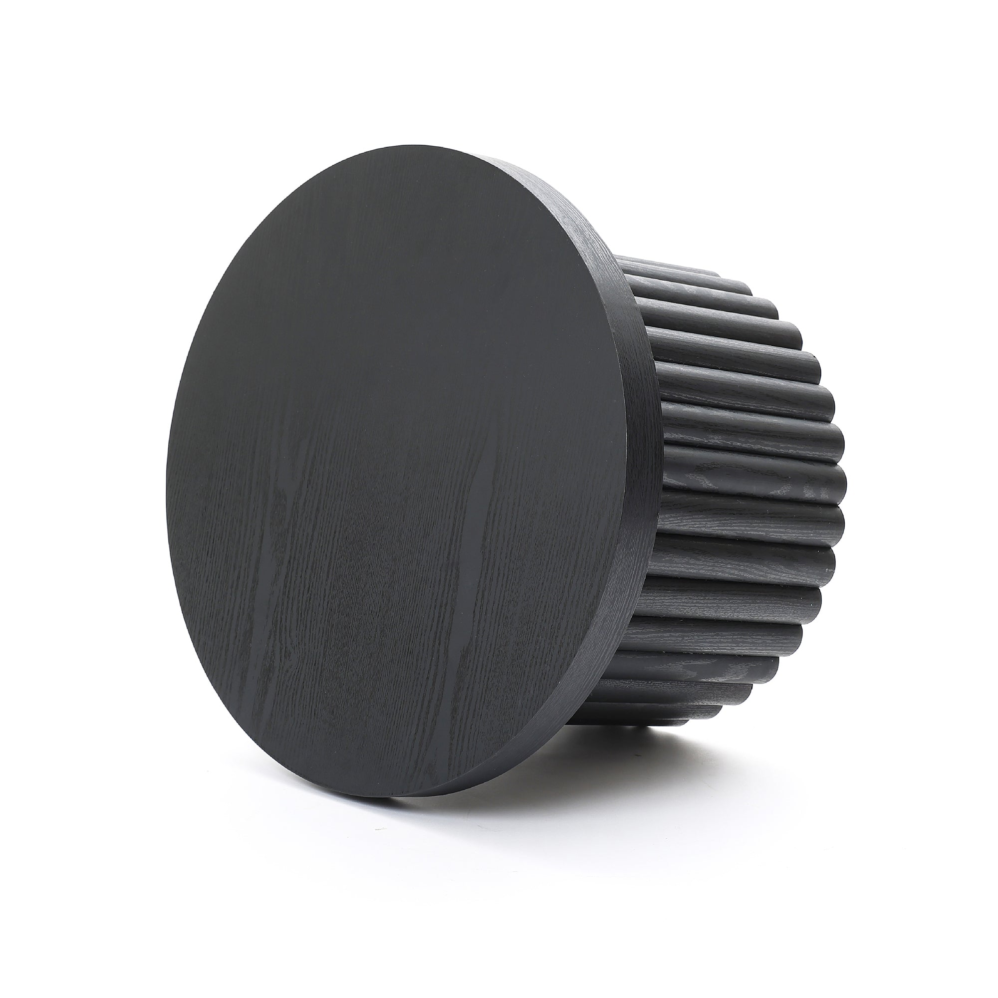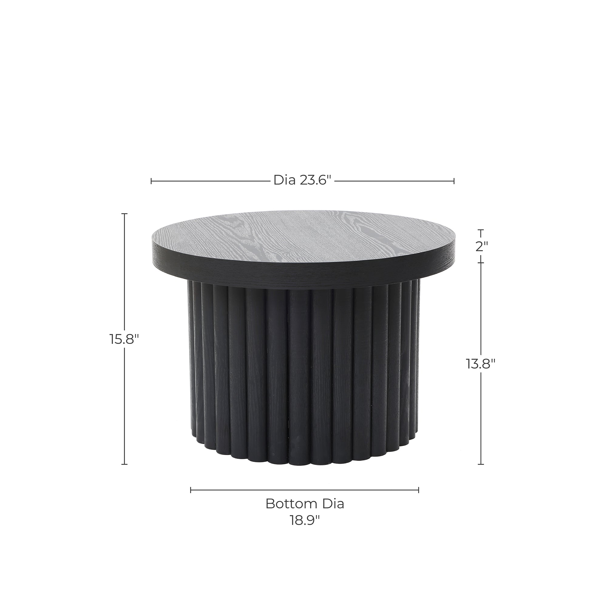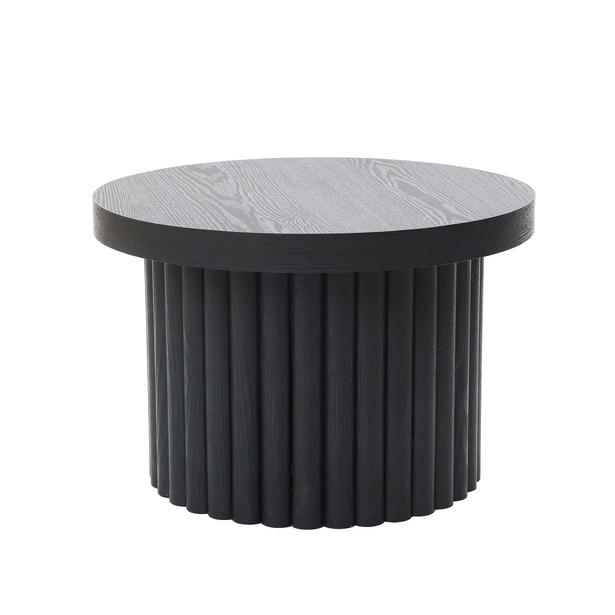 Bella Round Wood Fluted Coffee Table,Black 15.75''