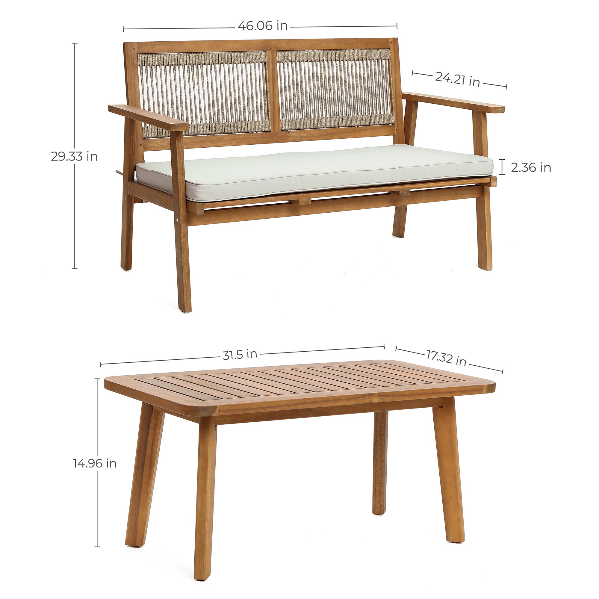 Tuscany outdoor acacia wood & rope loveseat and coffee table set