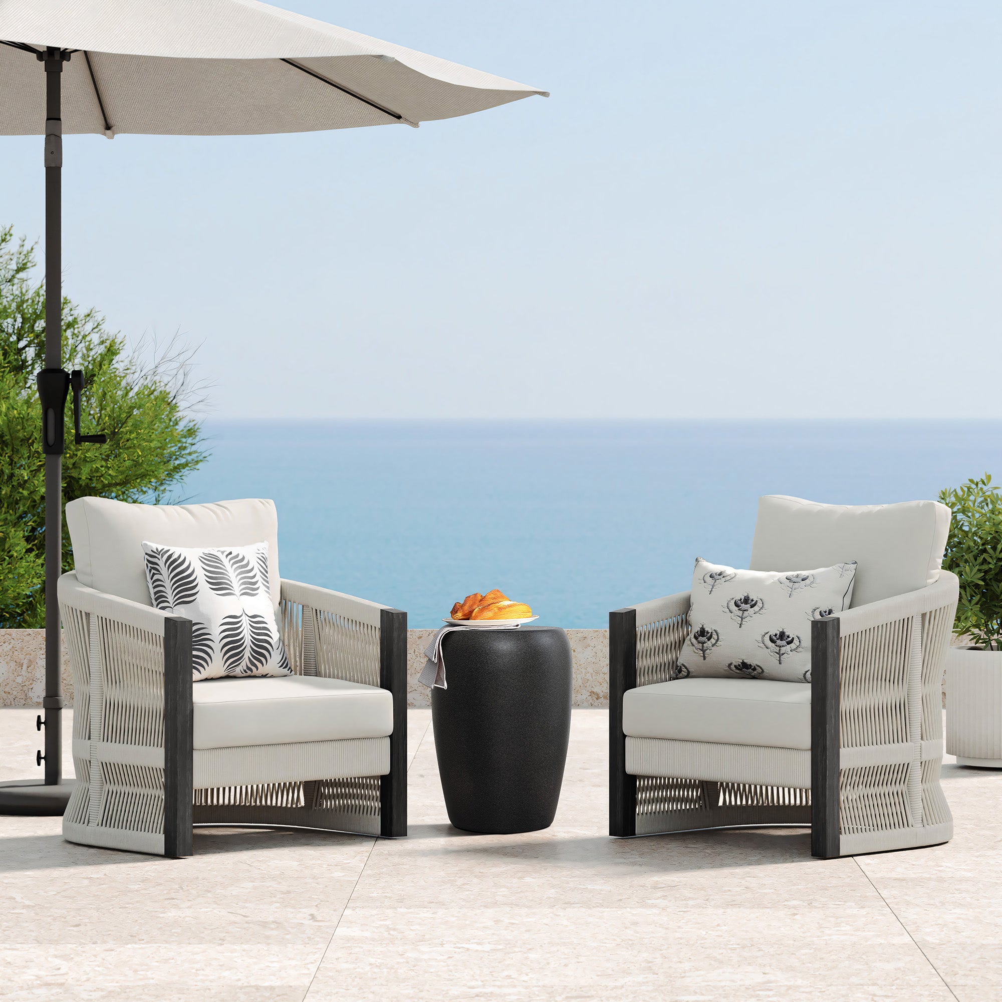 Picture it holding a potted plant by your poolside lounge or a coffee cup in your cozy corner.
