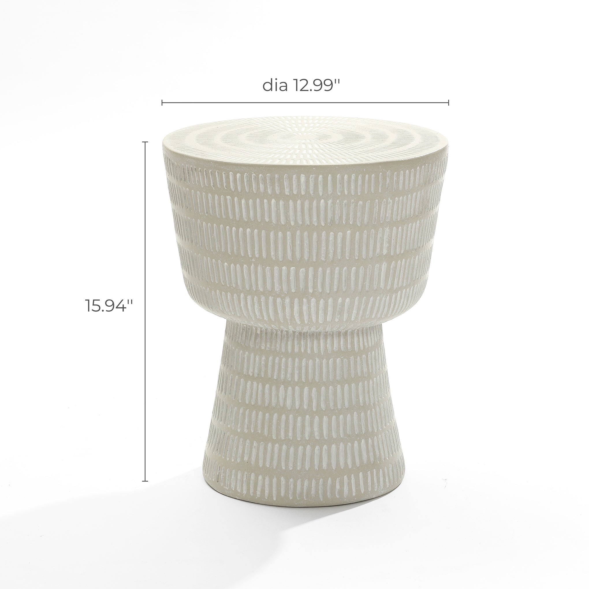 This modern white outdoor white side table features a unique ribbed design, adding an elegant touch to your outdoor space. Perfect for patios, gardens, or decks, its durable construction ensures long-lasting beauty.Made from high-quality Magnesium Oxide (MgO), this side table offers sturdy support and easy maintenance. Its minimalist cylindrical shape fits seamlessly with any modern decor.Ideal for use alongside your outdoor seating area or as a decorative accent, this versatile side table enhances your space’s style and functionality, making it perfect for both indoor and outdoor settings.Add a functional yet stylish white side table to your space with this white outdoor side table and enjoy effortless relaxation on your patio.