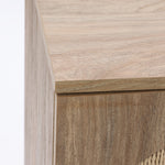 Wood storage cabinet brings the elegance of Japanese minimalist design to your home. Featuring clean lines, a warm natural wood finish, and handwoven arched doors.