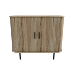 Elevate your space with this Mid-Century Modern Accent Cabinet, a perfect blend of form and function. Featuring fluted sliding doors, clean lines, and tapered legs, this small cabinet delivers timeless style in a compact footprint. Designed as an ideal cabinet for living room storage or entryway organization, it offers a modern slatted look that brings depth and texture to any room. Crafted from quality MDF with a warm wood finish, this Fluted Storage Cabinet is perfect for storing books, décor, or everyday essentials—without taking up too much space.