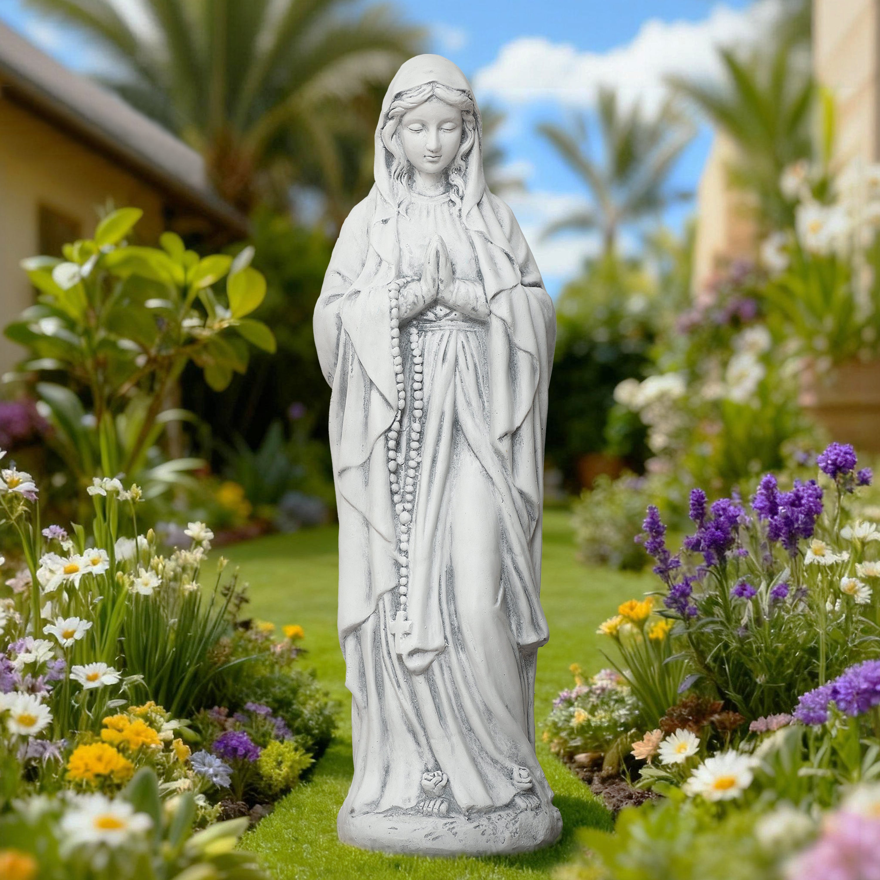 The 29.5" Praying Mary Statue featuring elegant rosary beads ,crafted Virgin Mary sculpture is designed to offer comfort, devotion while adding  peaceful, sacred touch to any environment.