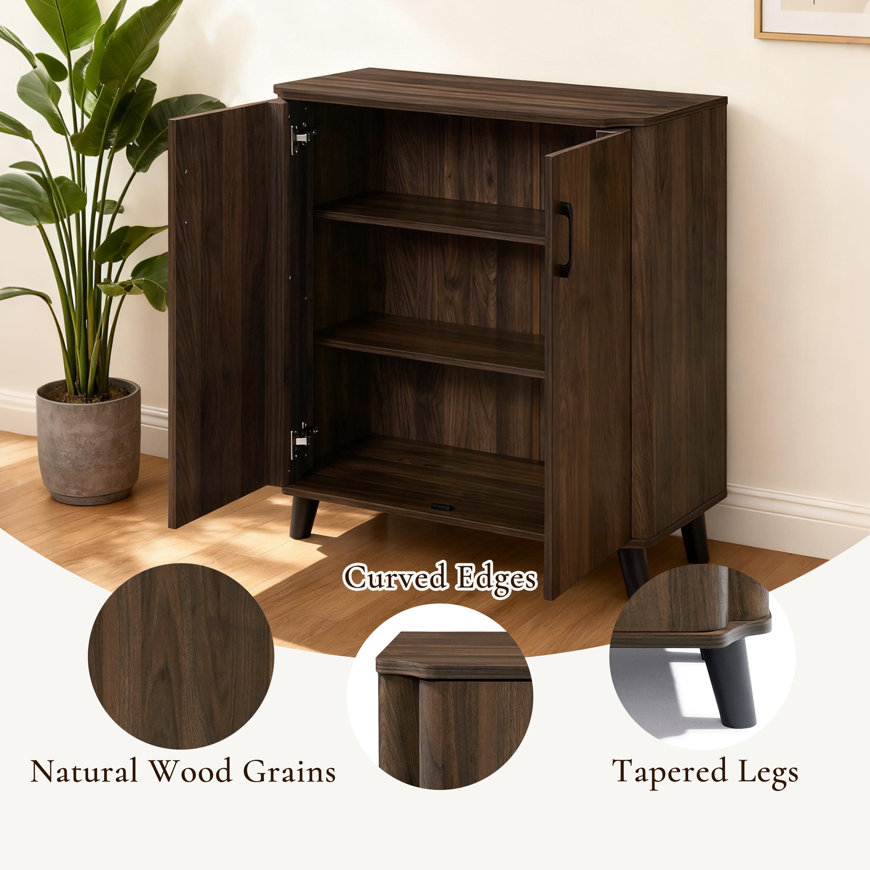 Leo Walnut Storage Cabinet with Doors, Mid-Century Modern Cabinet, 31.5" W
