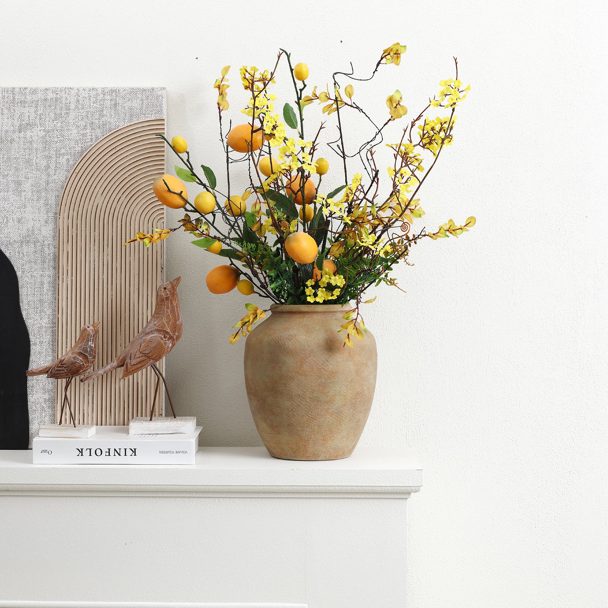 Made from high-quality terracotta, finished with an antique golden-brown glaze,features classic round shape, earthy color that complements variety of decor styles. Perfect for displaying fresh flowers, pampas grass, dried stems. Its sturdy construction ensures longevity while maintaining a lightweight ,easy-to-move design.