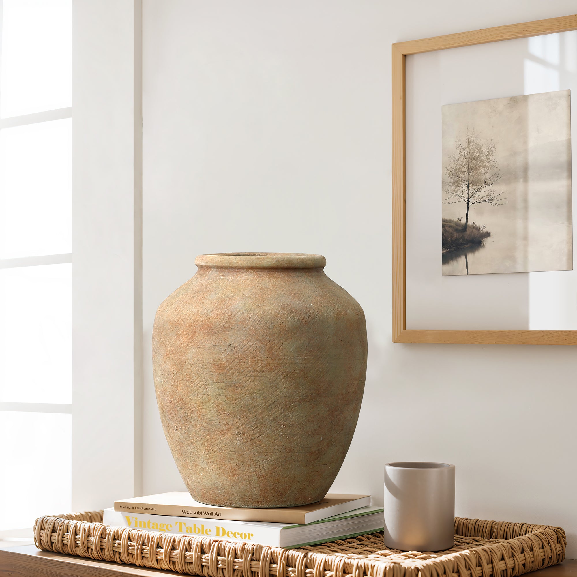 Rustic Golden Brown Round Terracotta Vase,10.2''