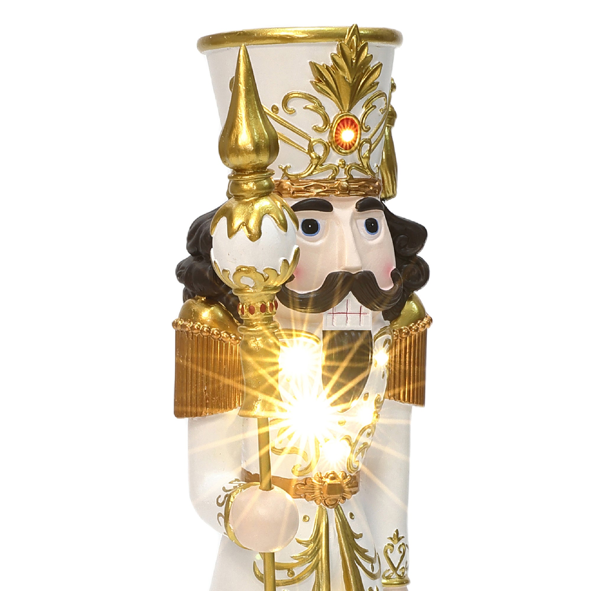 Christmas Soldier Nutcracker Decor in White & Gold with Lights, 2 ft