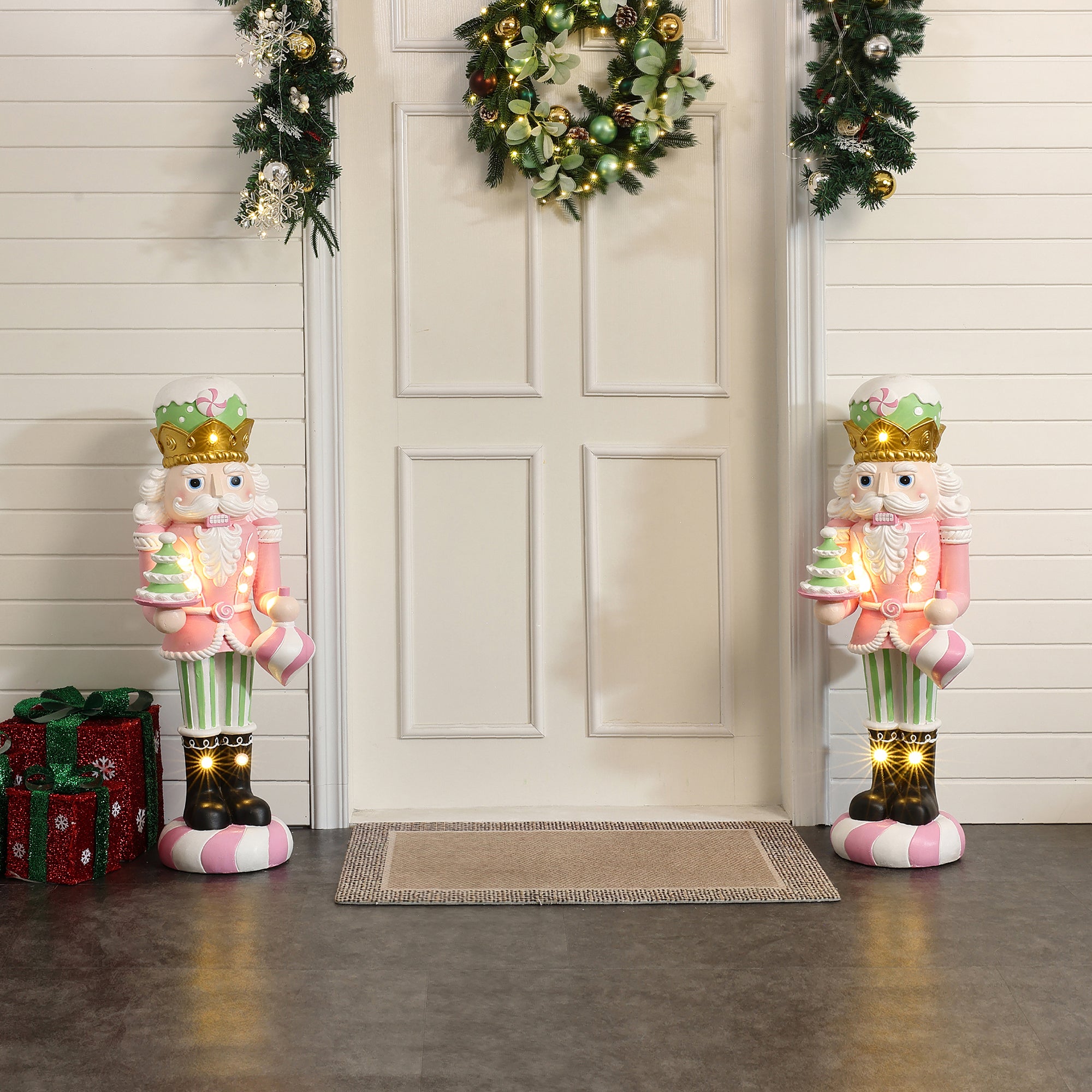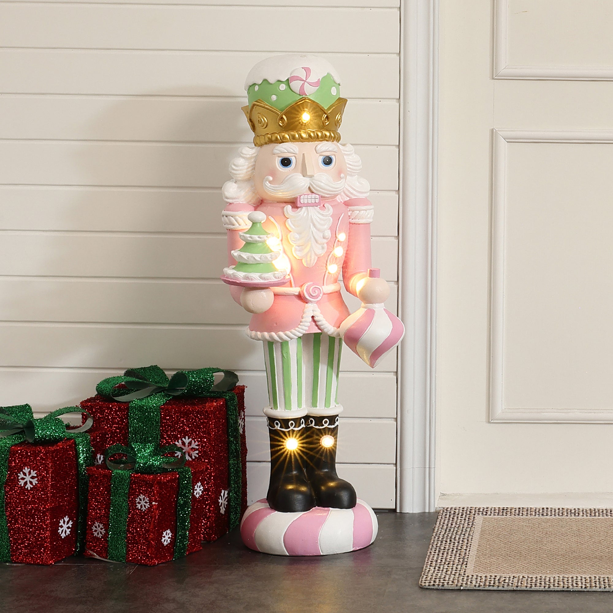 Add playful charm to your holiday décor with this 3ft nutcracker pink soldier. Dressed in pastel candy hues and crowned with a frosting-inspired hat, he brings a whimsical, sugary twist to Christmas.