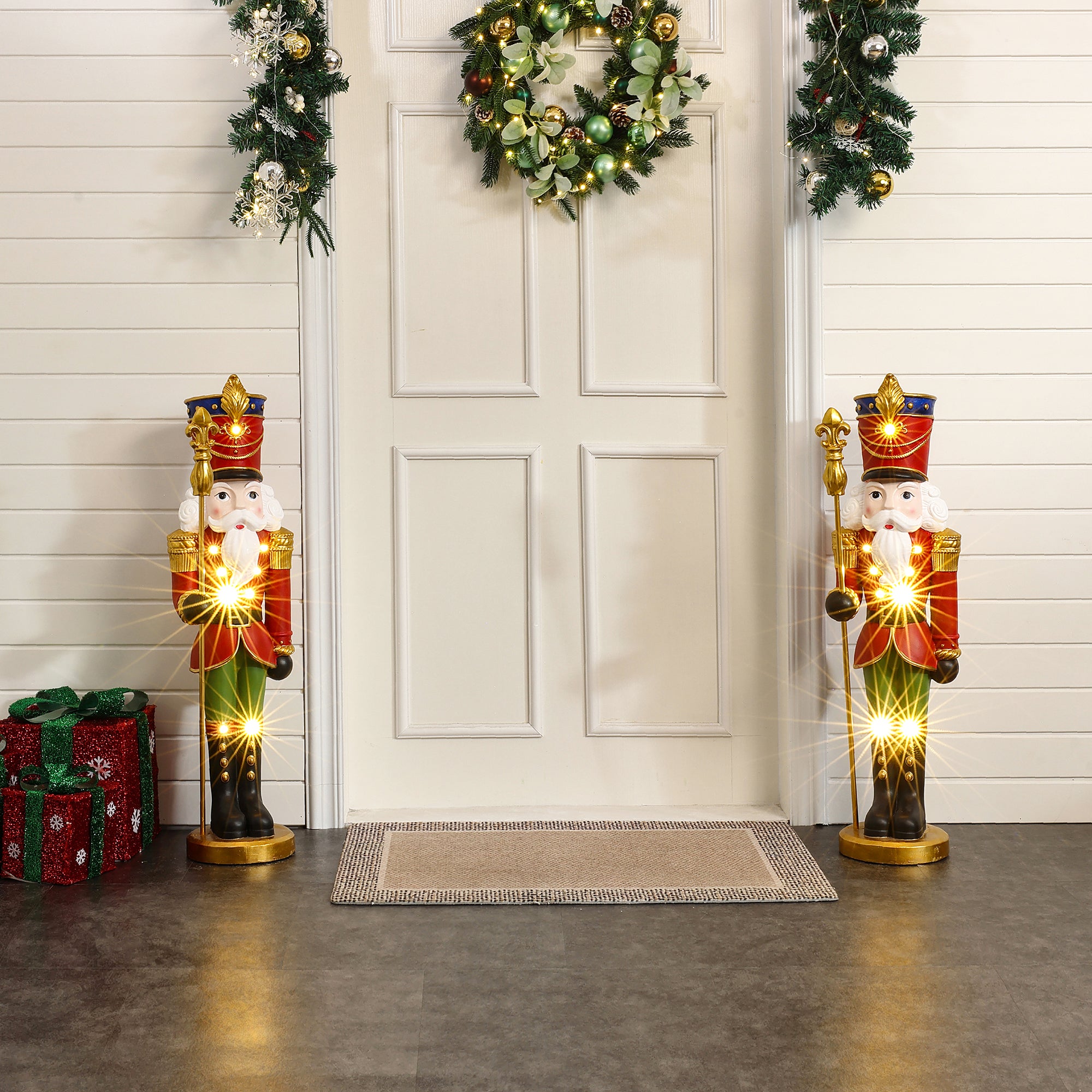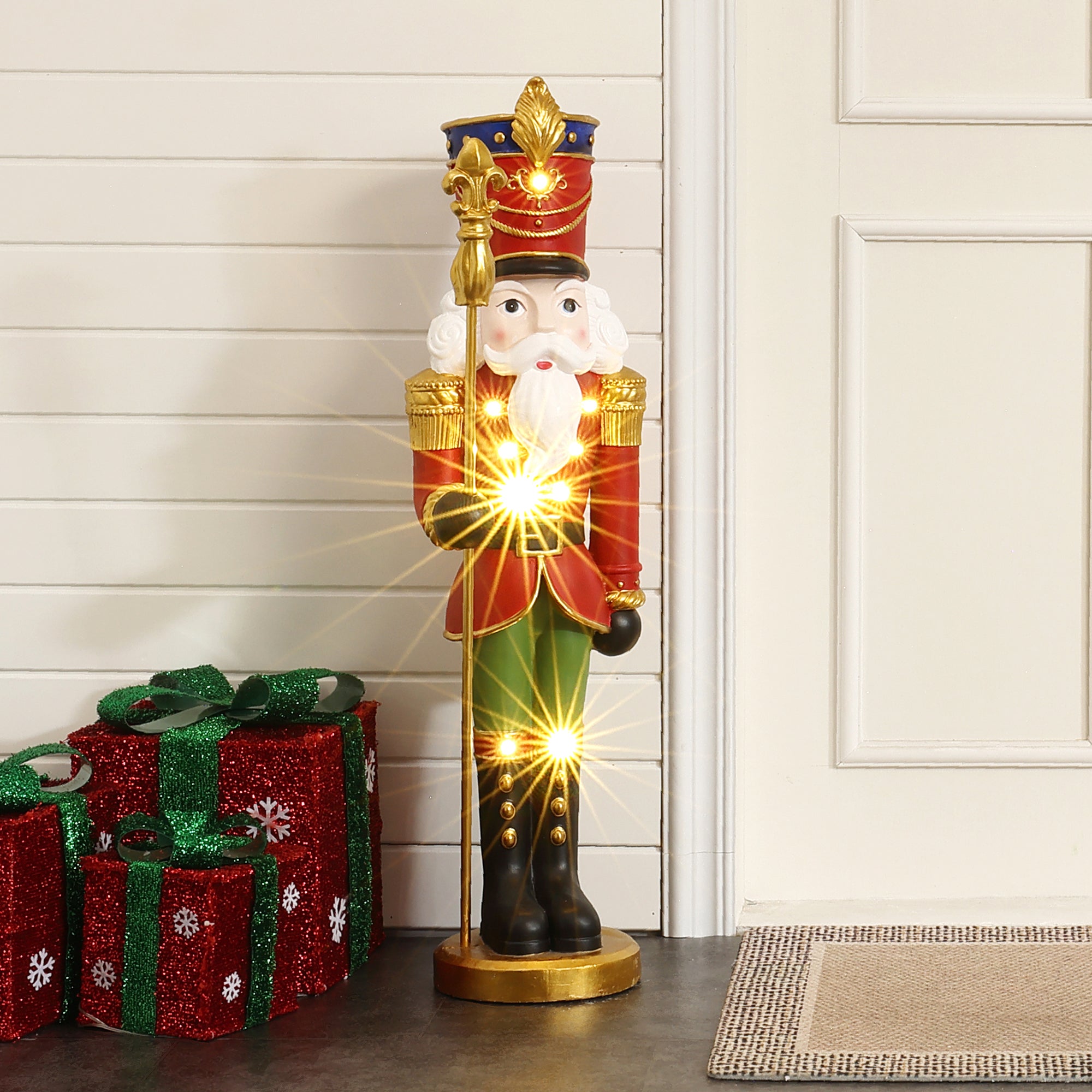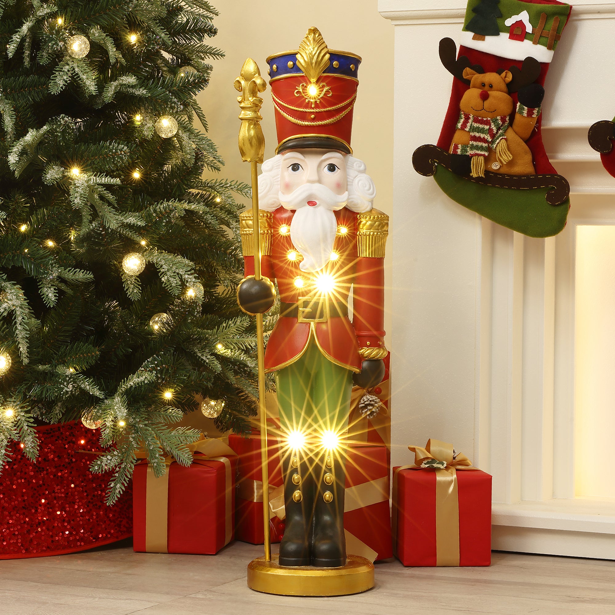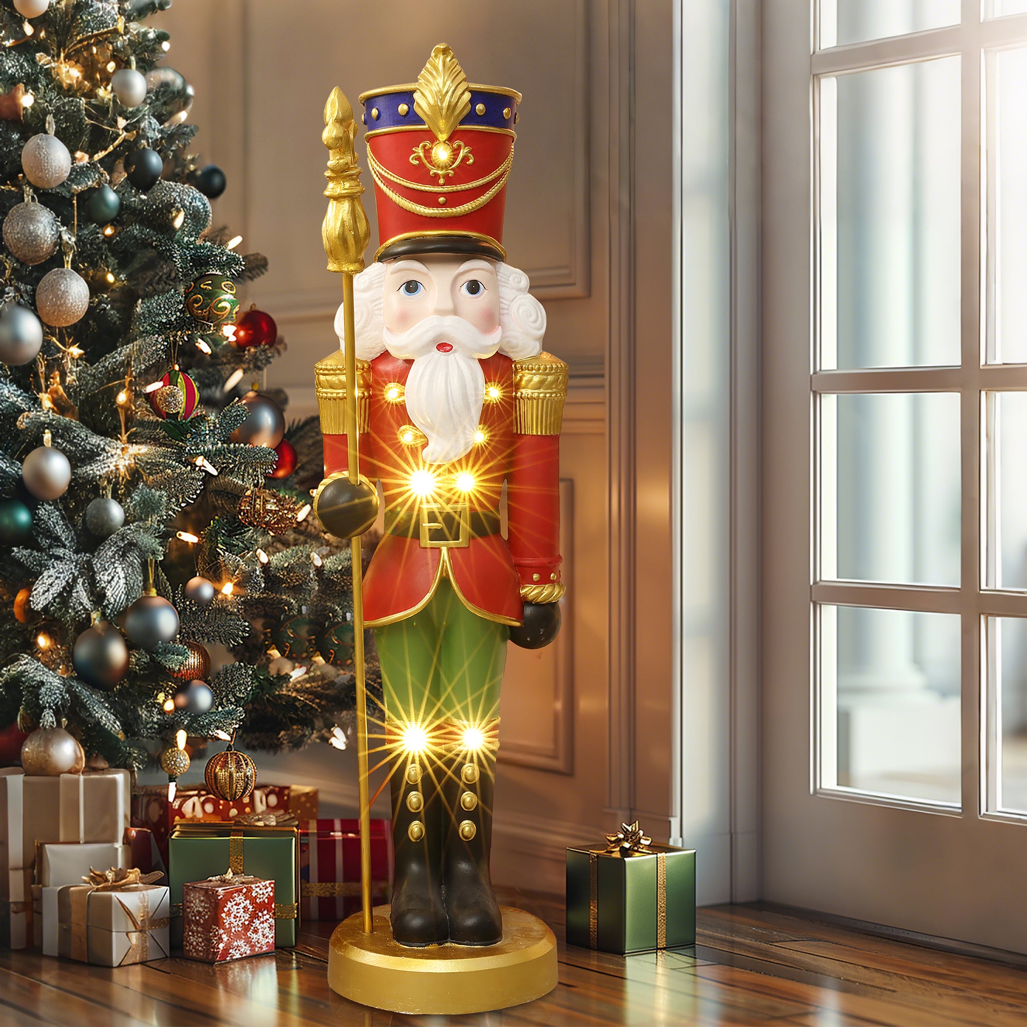 Christmas Soldier Nutcracker Decor with Scepter and Lights, 3ft
