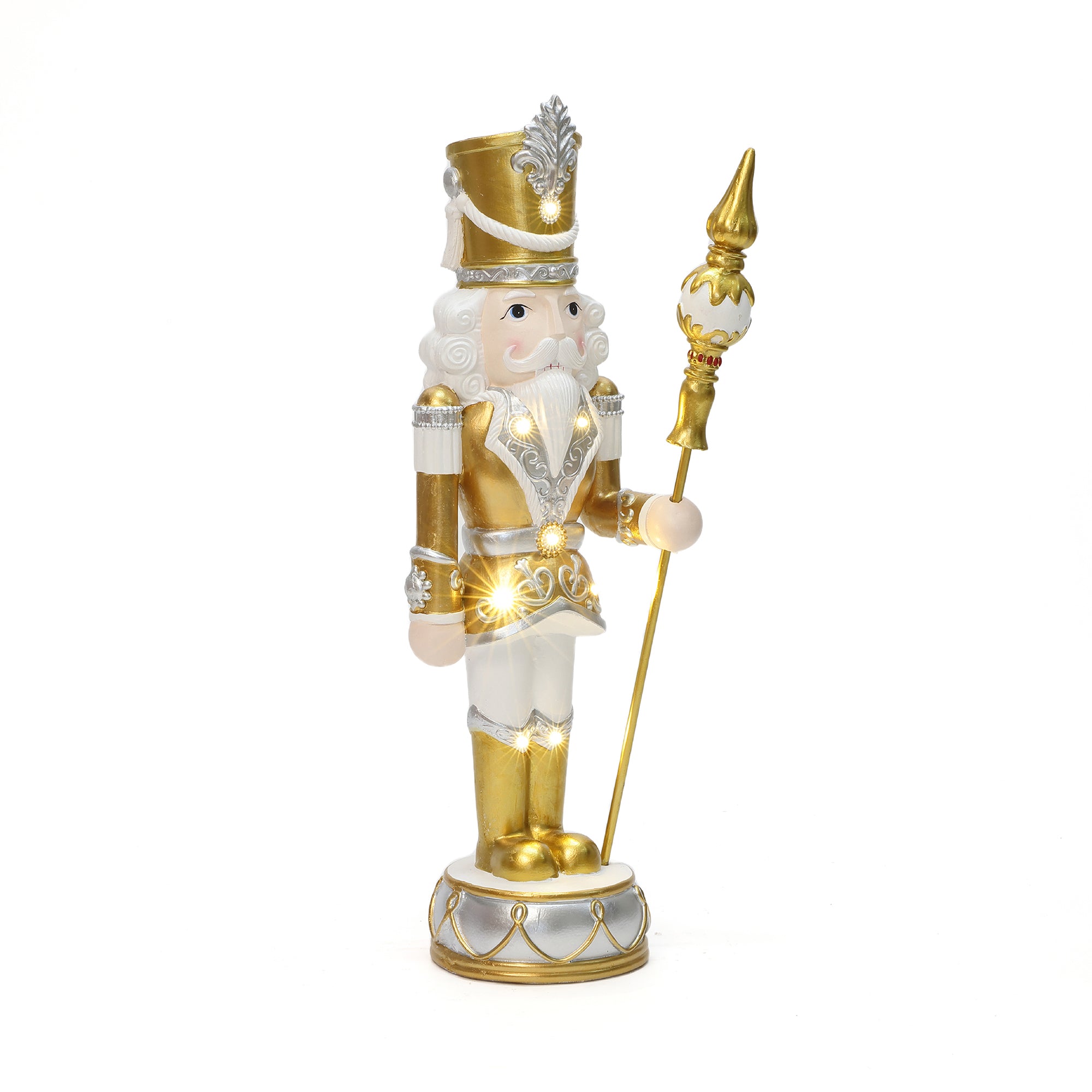 Christmas Soldier Nutcracker in Silver & Gold with Lights, 3 ft