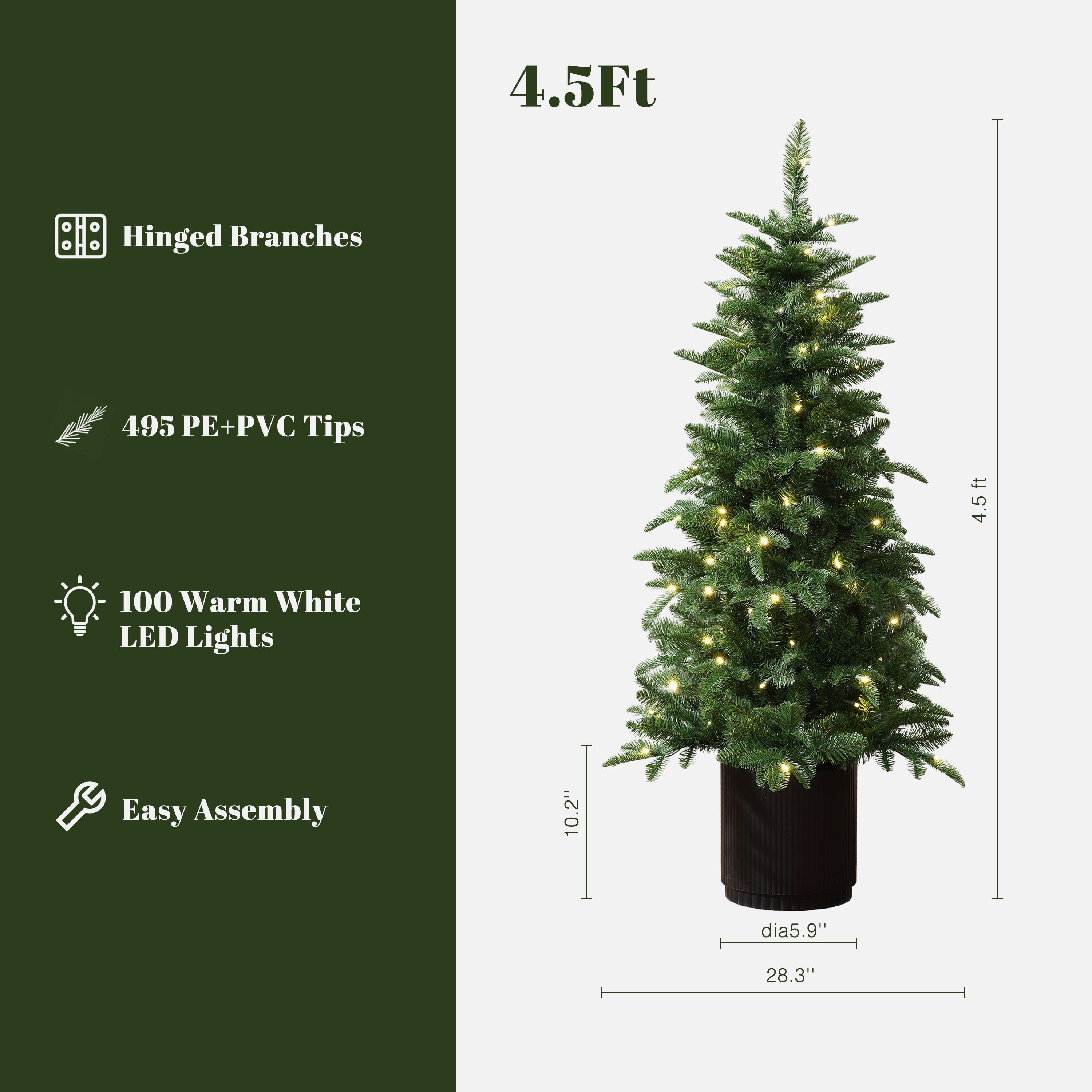 4.5Ft Pre-Lit Green Full Fir Potted Artificial Christmas Tree
