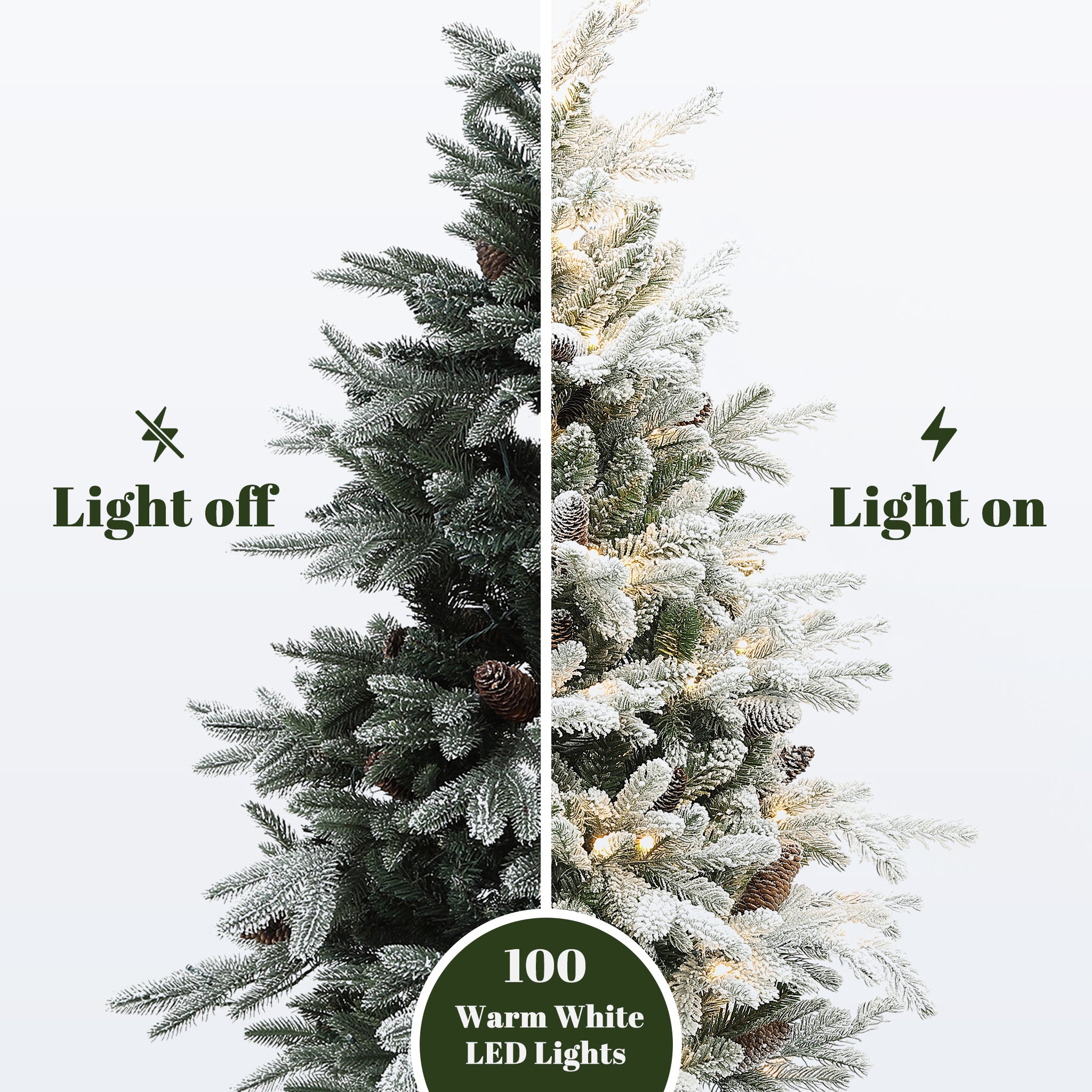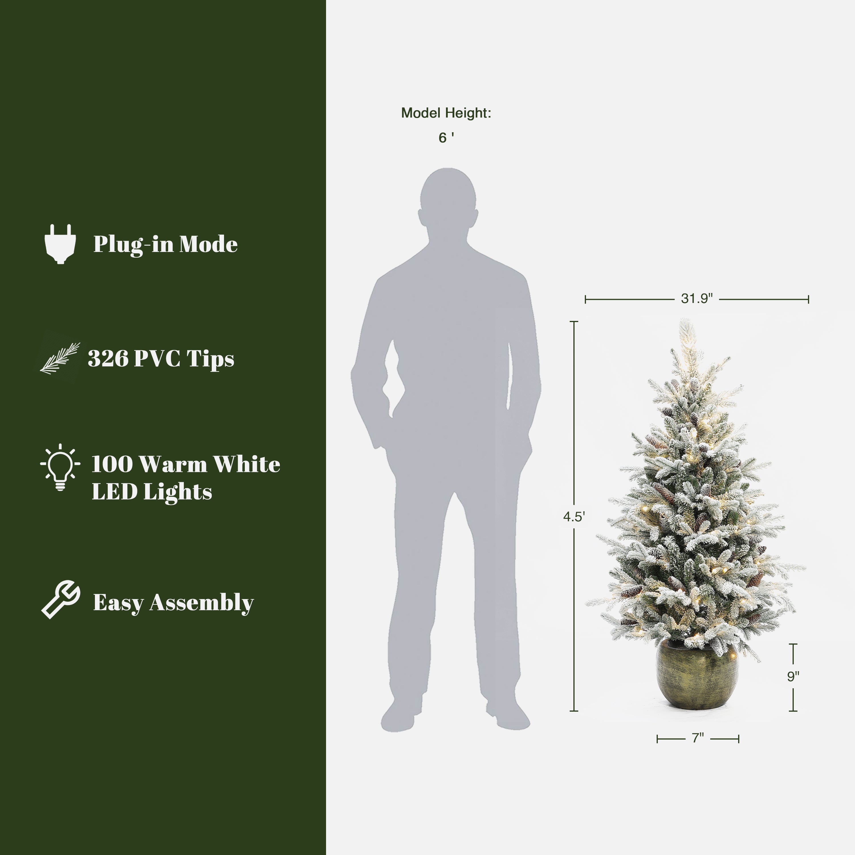4.5Ft Pre-Lit LED Artificial Flocked Pine Tree with Pine Cones and Pot