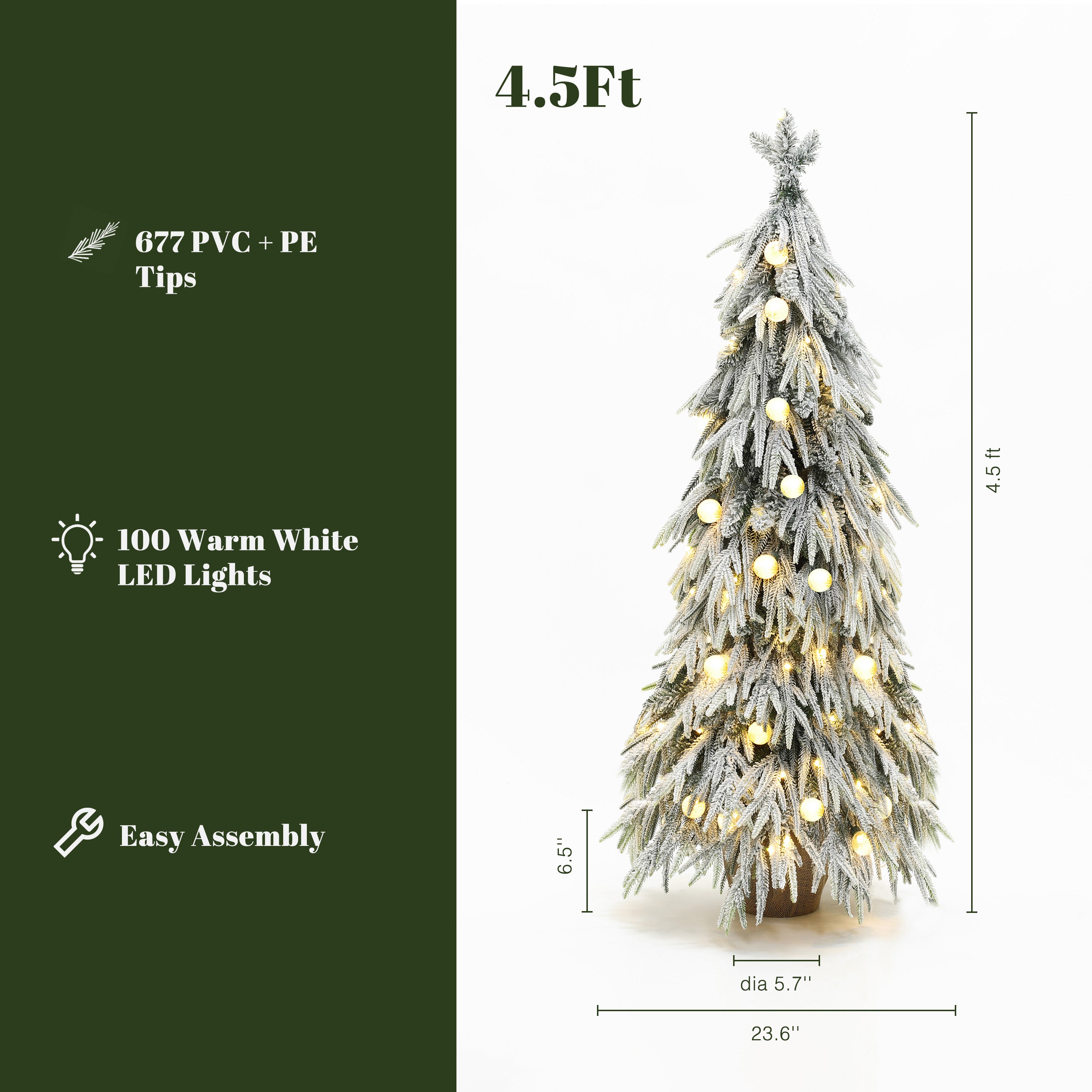 4.5Ft Pre-Lit Snow Flocked Slender Fir Artificial Christmas Tree