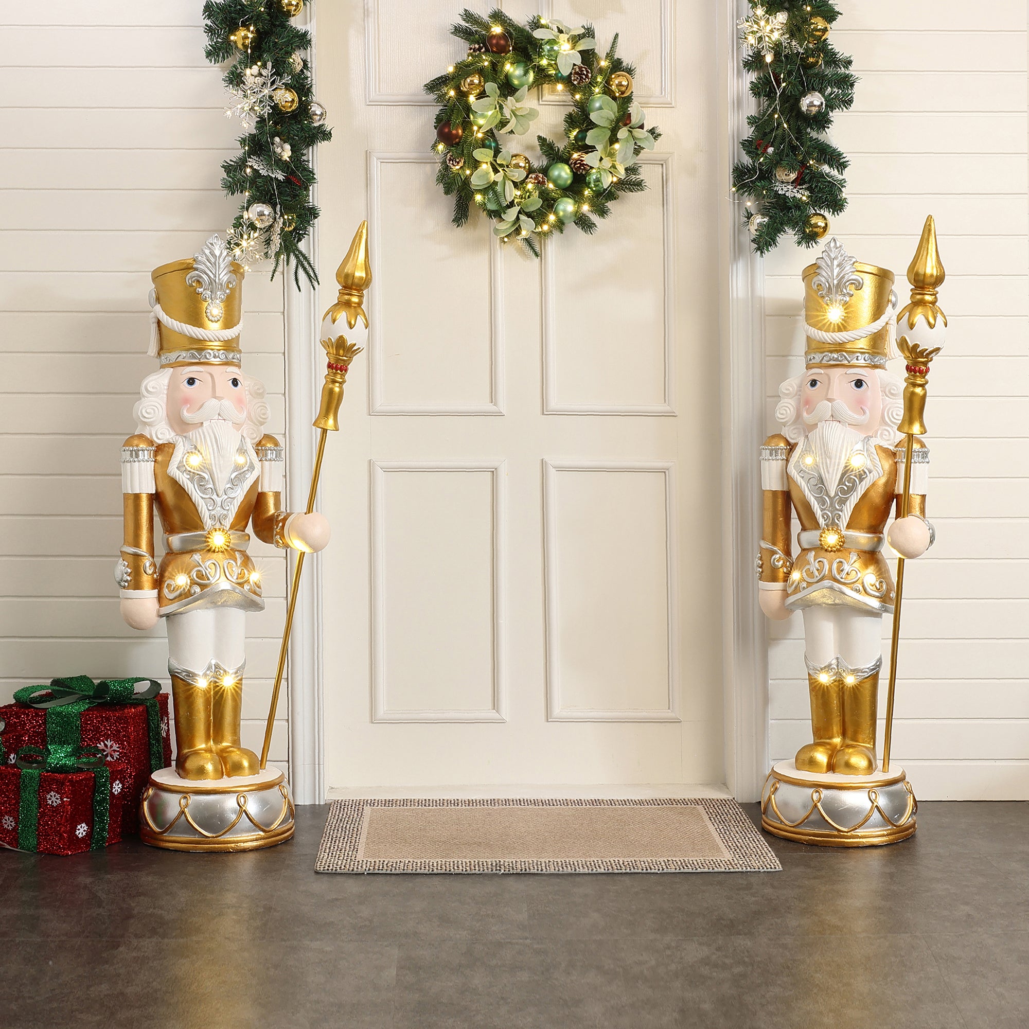 Christmas Soldier Nutcracker in Silver & Gold with Lights, 4 ft