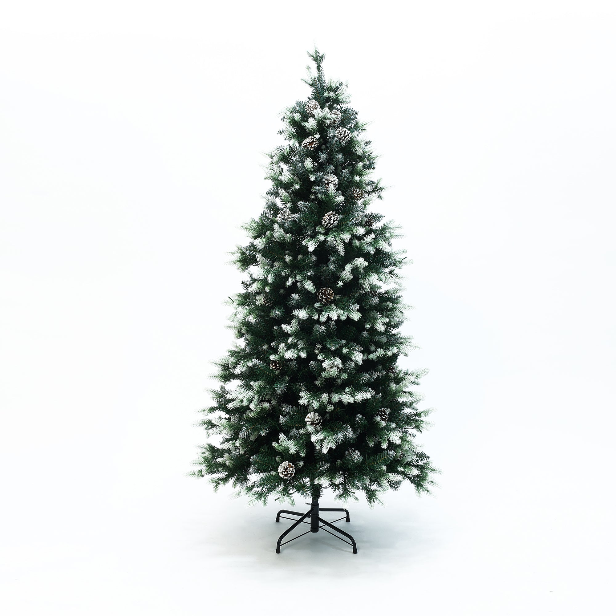 - Two-Color Design:Green tree body combined with frosted white branch tips with pine cone decor, natural lifelike.
