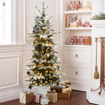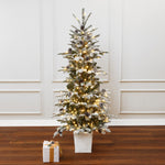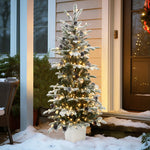 Pre-Lit Flocked Pine Christmas Tree with Silver Pot,5ft