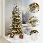 This 5Ft Pine Christmas Tree. Covered in realistic snow ,adorned with natural pinecones, it exudes a serene, romantic charm.