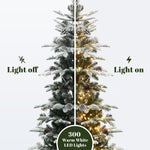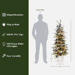 Crafted from high-quality PE +PVC materials, features 3-section structure for easy setup, Pre-lit with 300 warm white LED lights, casts gentle glow.Requiring only minimal fluffing to achieve the perfect shape. Sits in a silver MgO pot base, offering both stability.