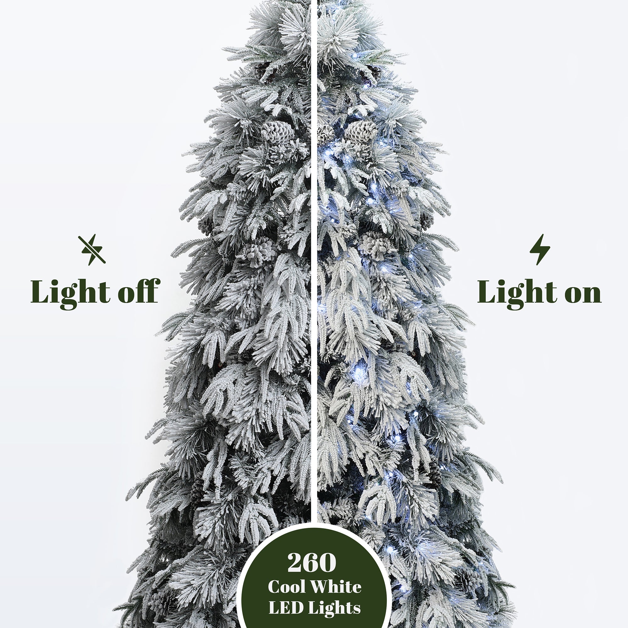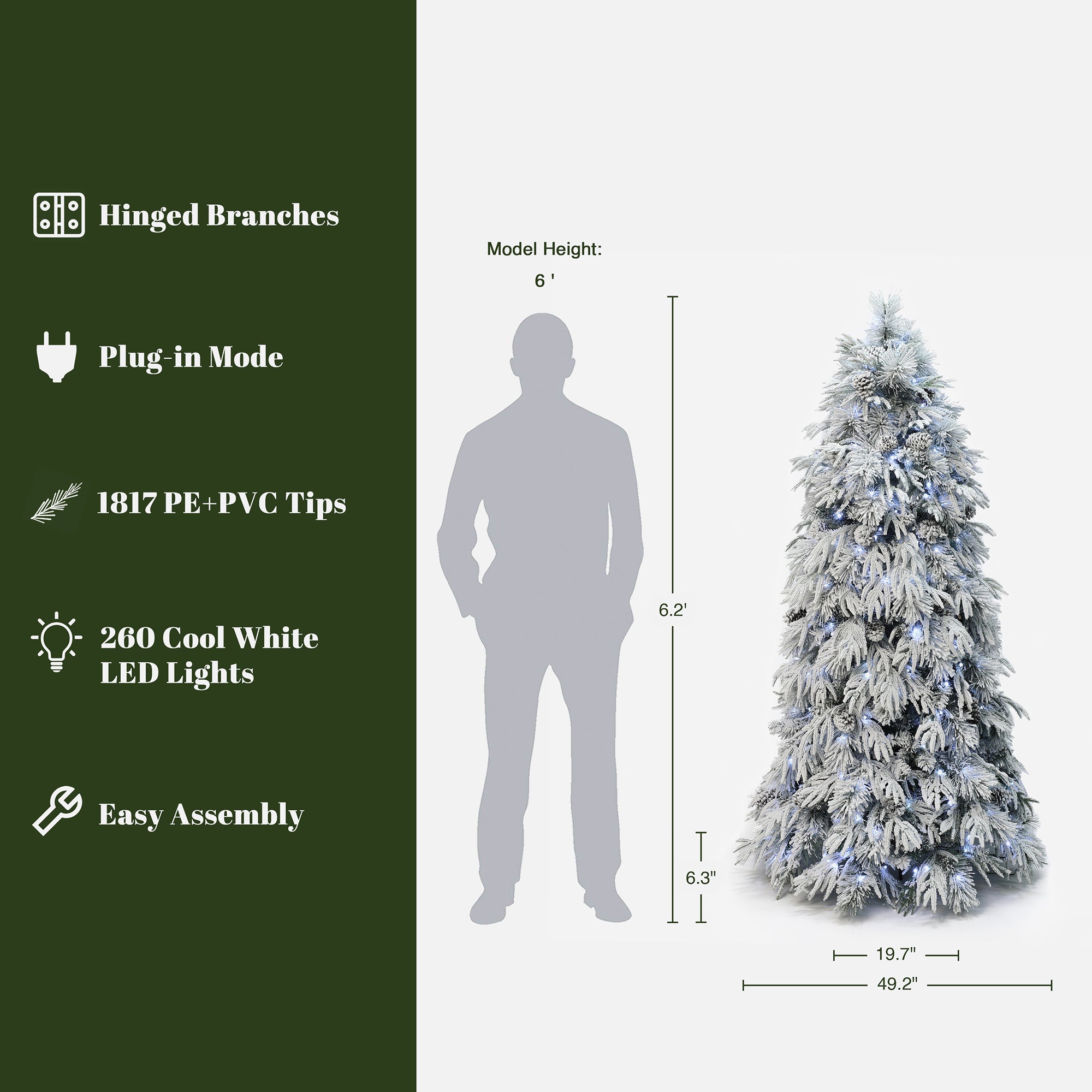 - Full-Tree Snowflake Coating: Covered in a high-simulation snowflake layer, boasts a finely textured.