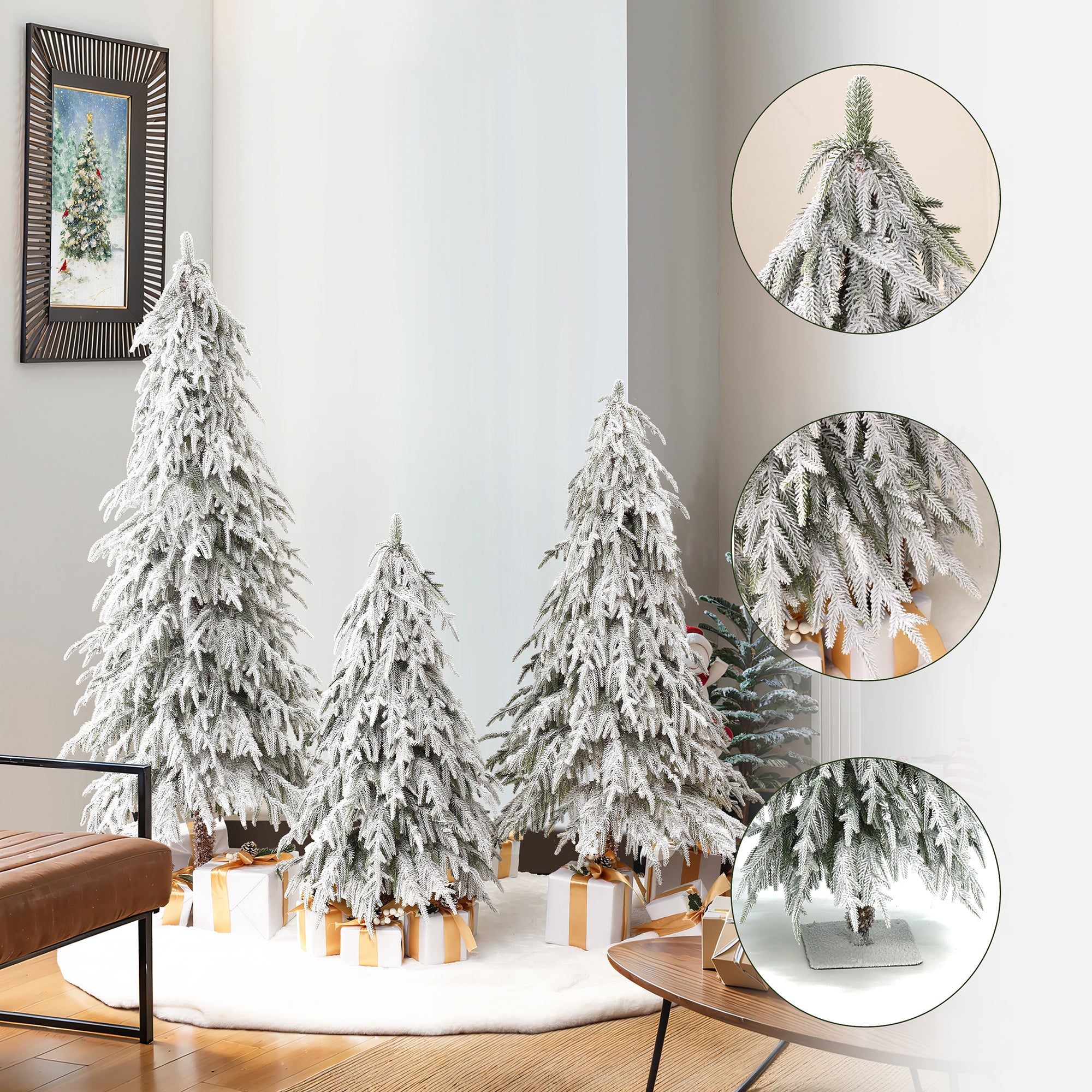 Christmas Artifical Snow-Flocked Cedar Trees, Set of 3